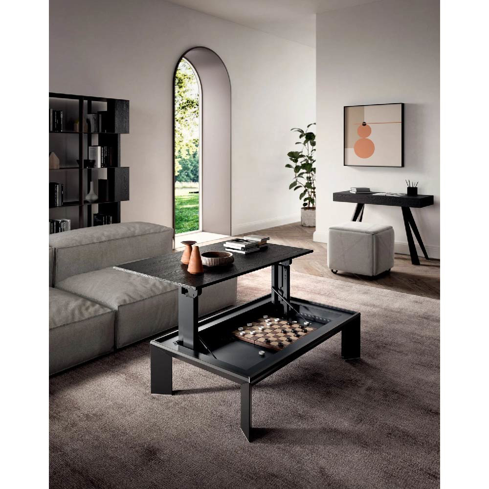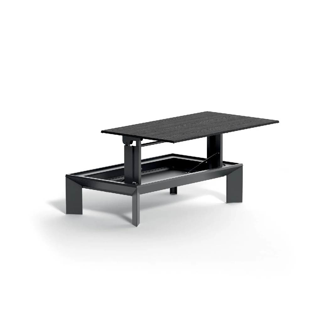 Two-heights (12.59">25.59") transformable coffee-table with metal structure and wooden top. Self-braking gas-lifting device. Designer: Marco Pozzoli / Giacomo Mauri