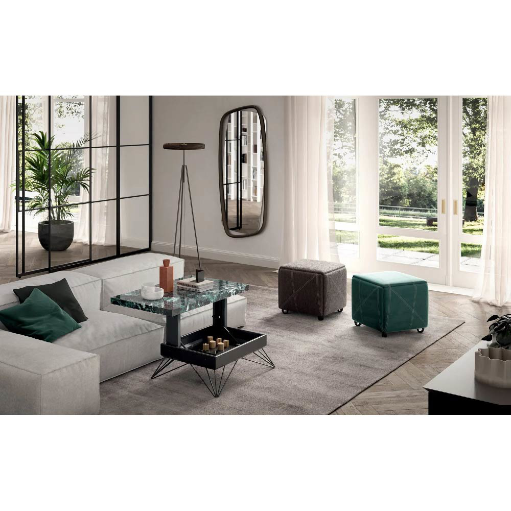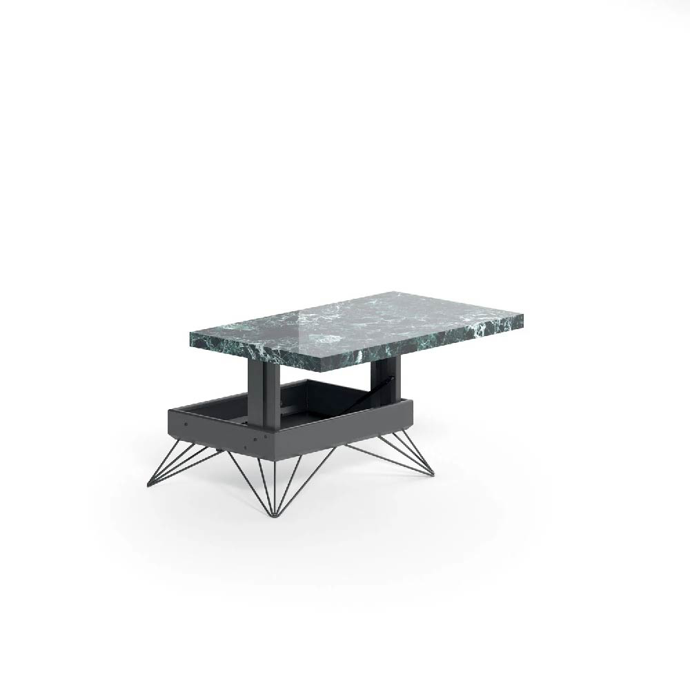 Two-heights (12.29">25.59") transformable coffee-table with metal structure and legs, natural stone layer, marblr glass or wooden top. Self-braking gas-li-fting device. Designer: Marco Pozzoli