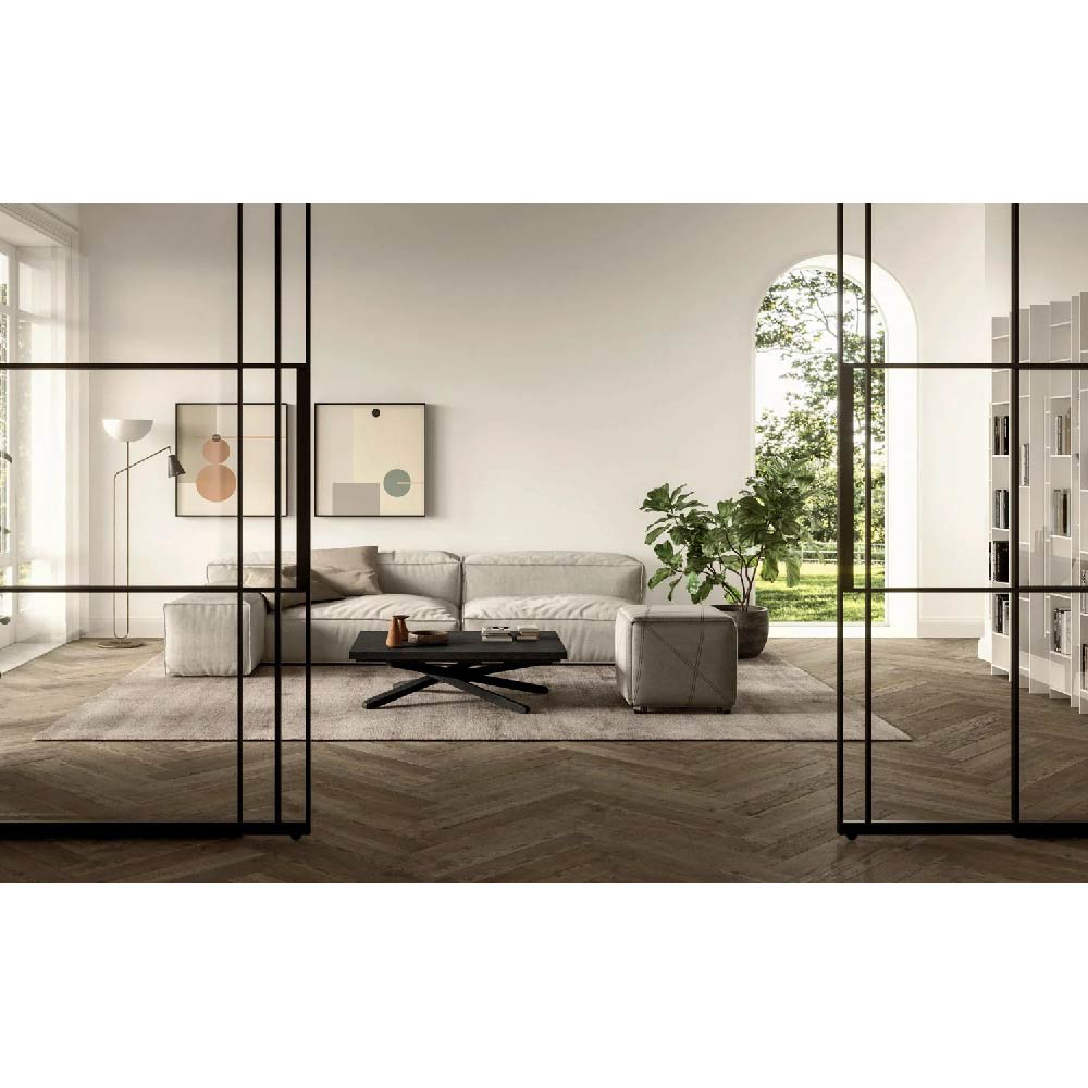 This extraordinary piece of furniture is able to harmoniously stand out with the living environment, in fact the game of intersections of the elevating base creates a perfect combination of design and efficiency.