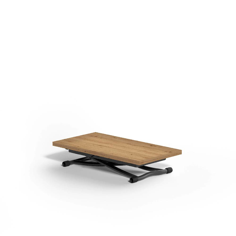 Metal frame transformable table, gas adjustable height from 9.05" to 29.92", ecowooden doubling top. Designer: Studio Ozeta / Toshiyuki Yoshino