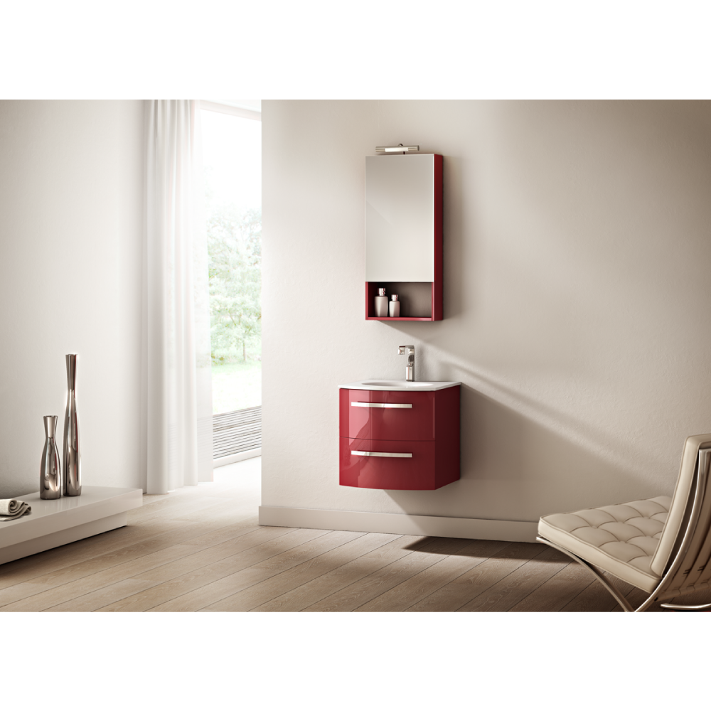 Zilda 22" wall-mounted vanity in glossy black, white, red, grey, slate or sand. This includes the vanity piece, which has two soft-closing drawers, along with the Tekorlux (composite) sink top. Hardware is included. Optional legs are available (model number: OA-AM-LEGS).