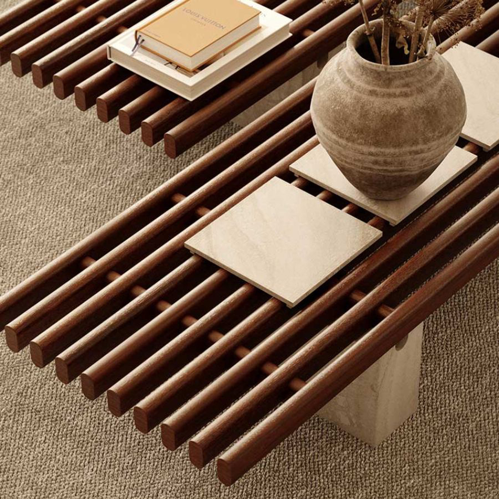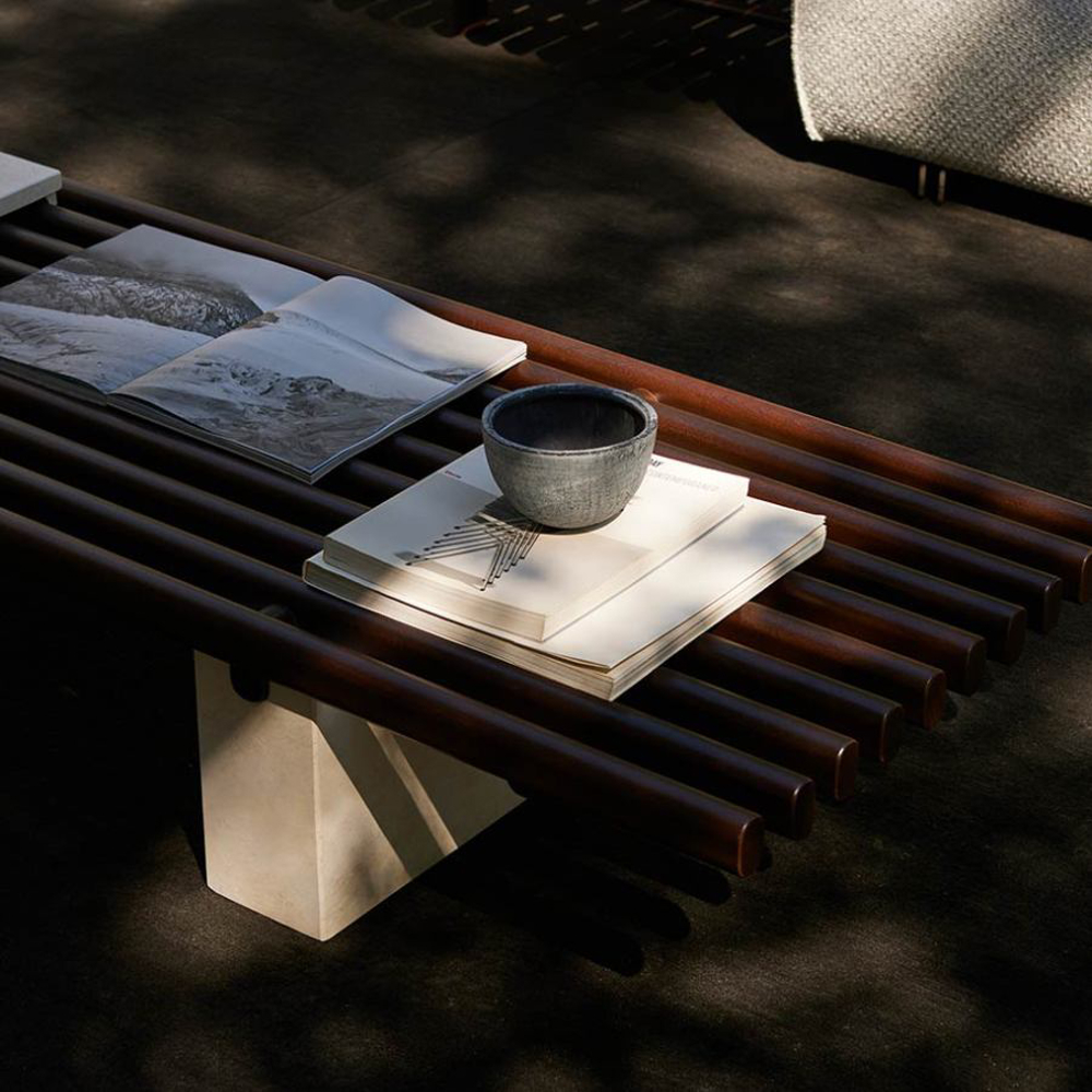 From the Sapelli mahogany of the top, to the precious marble of the supporting bases, the materials are chosen with the most extreme care. The structure of Panarea Coffee Table is available in three tray sizes in different colour finishes: a detail born from nature and made precious by craftsmanship.