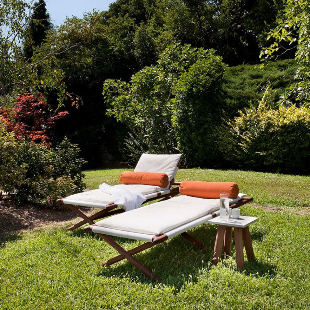 Vintage inspired, the design of the sundress refers to the carefree well-being of Italian beaches in the Sixties. Lightweight features and painstaking details, such as stainless steel miniatures and meticulous fabric stitching, make Paraggi Sun Lounger a tailor-made comfort experience.