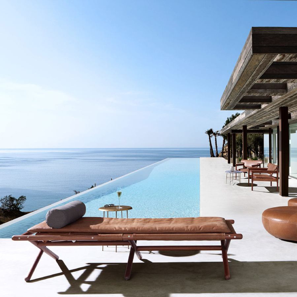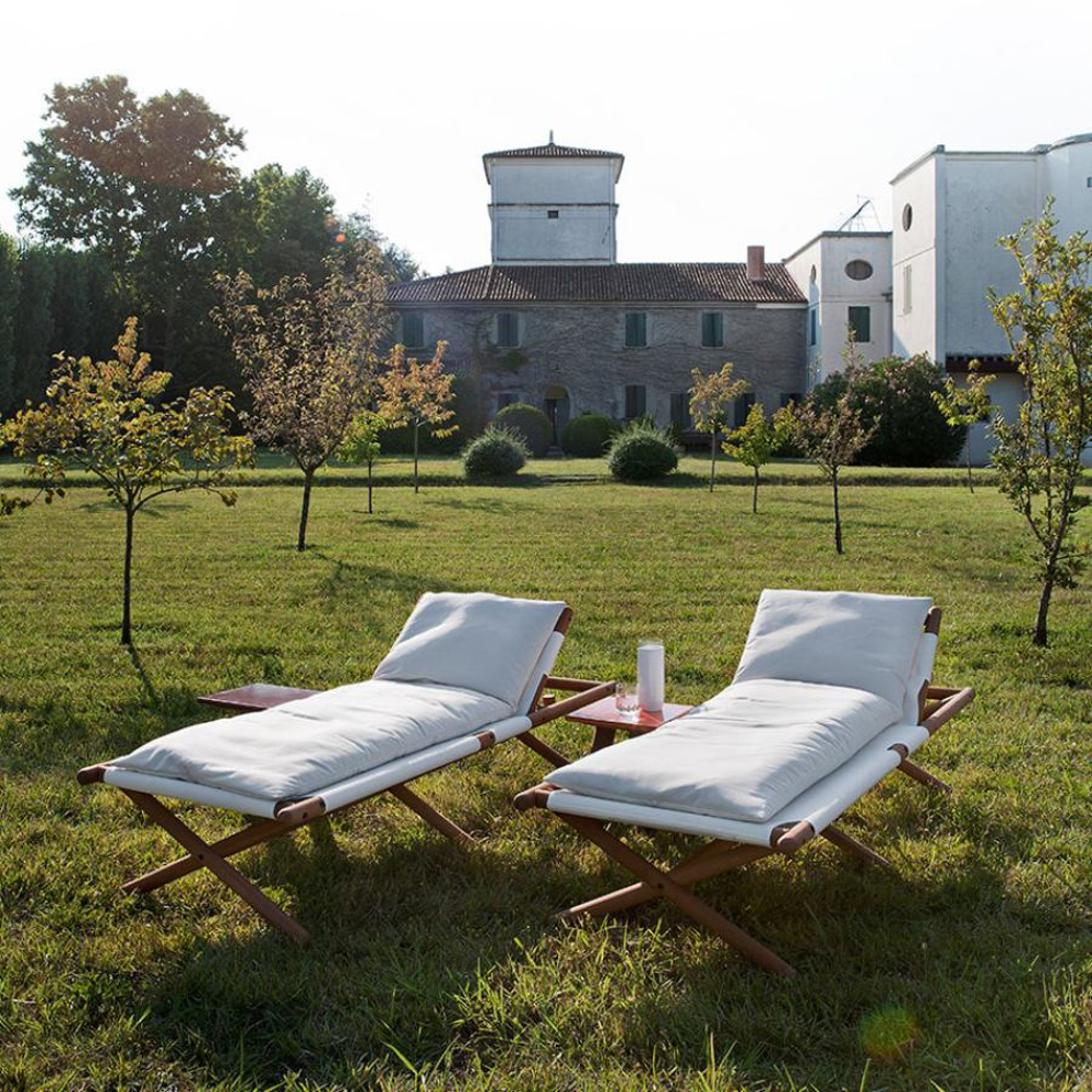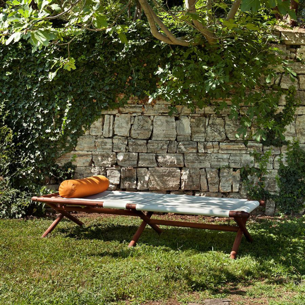 The balance between essential lines and refined materials transforms the sunbed into an immersive and dreamlike experience. Elegant and comfortable, Paraggi Sun Lounger adds a sense of mediterranean lightness to the environment, fulfilling the desire of relaxing in the open air.