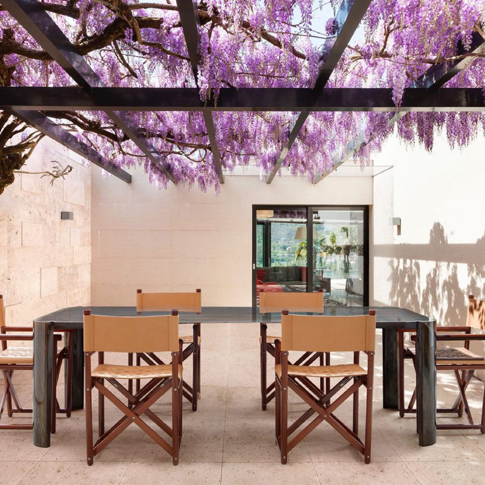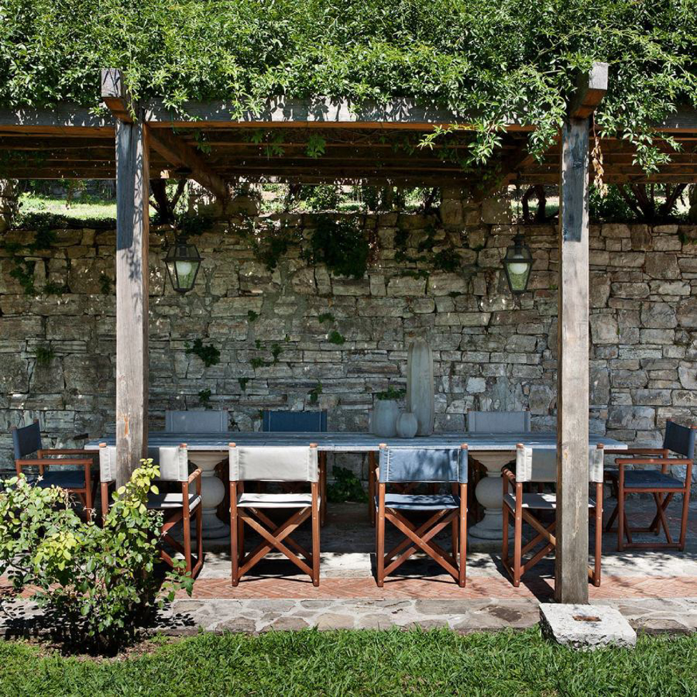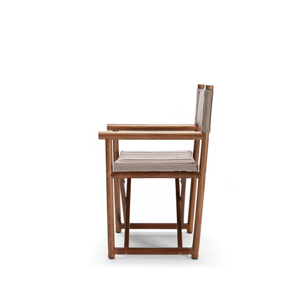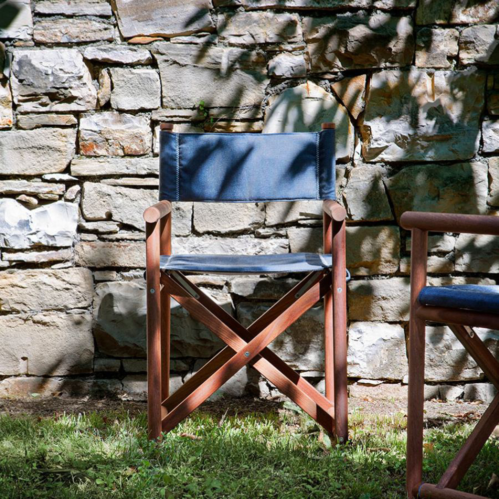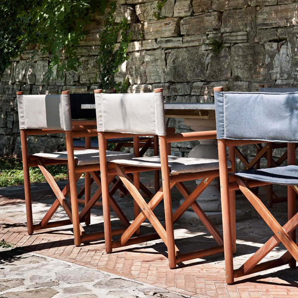 A reinterpretation of a great classic with a nostalgic taste, inspired by Italian summers: the director's chair in an outdoor key. From the great cabinet-making tradition of Exteta, a precious collection is born, timeless but with modern details.
