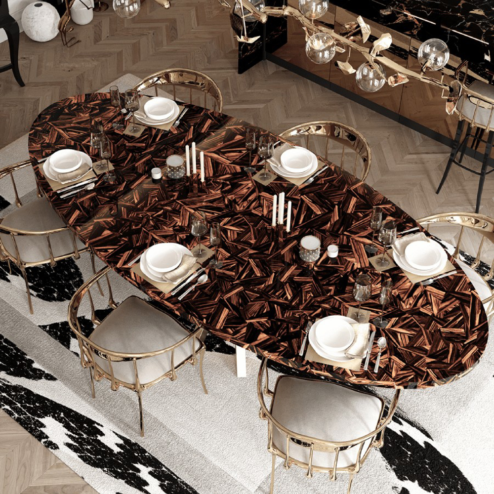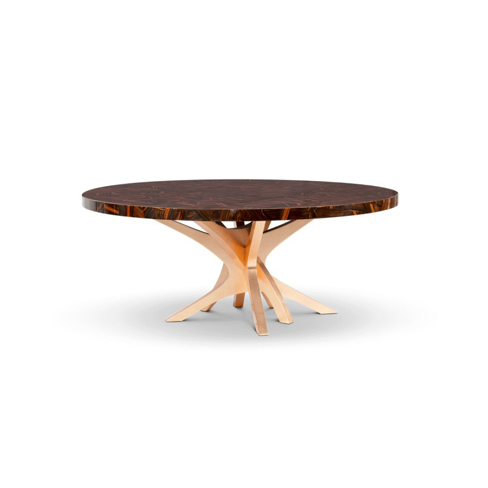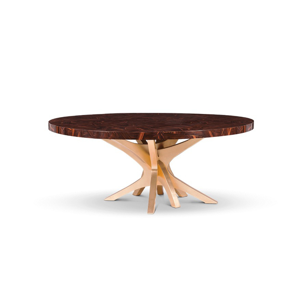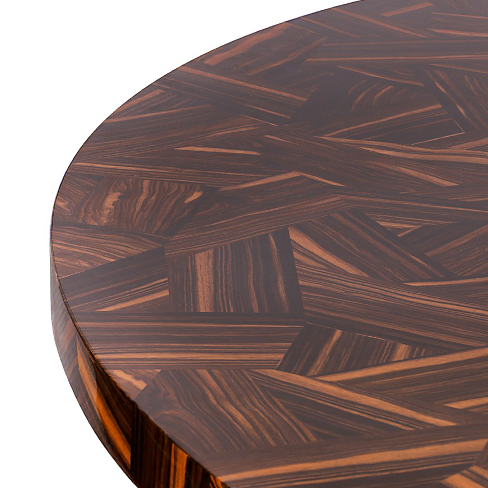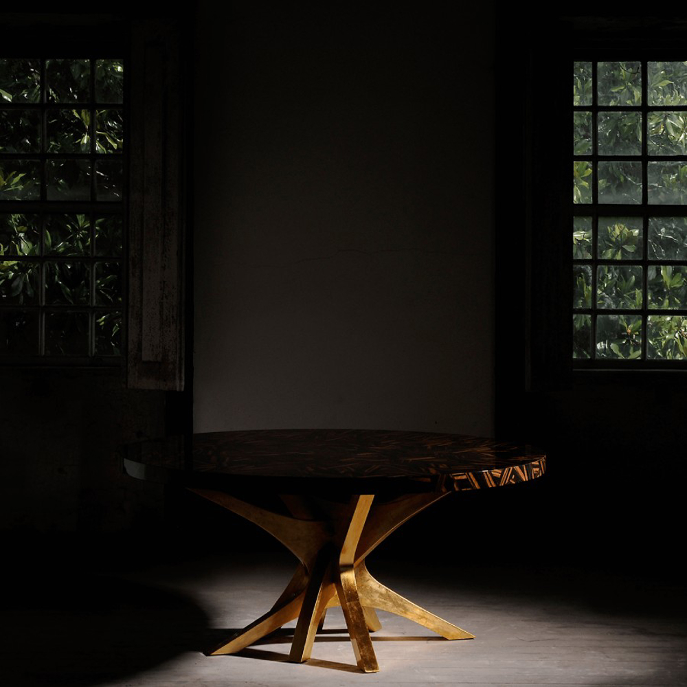 Table with a top made through marquetry in ebony leaf. Its base is made from wood, lined with golden leaf. Finished with high gloss varnish.