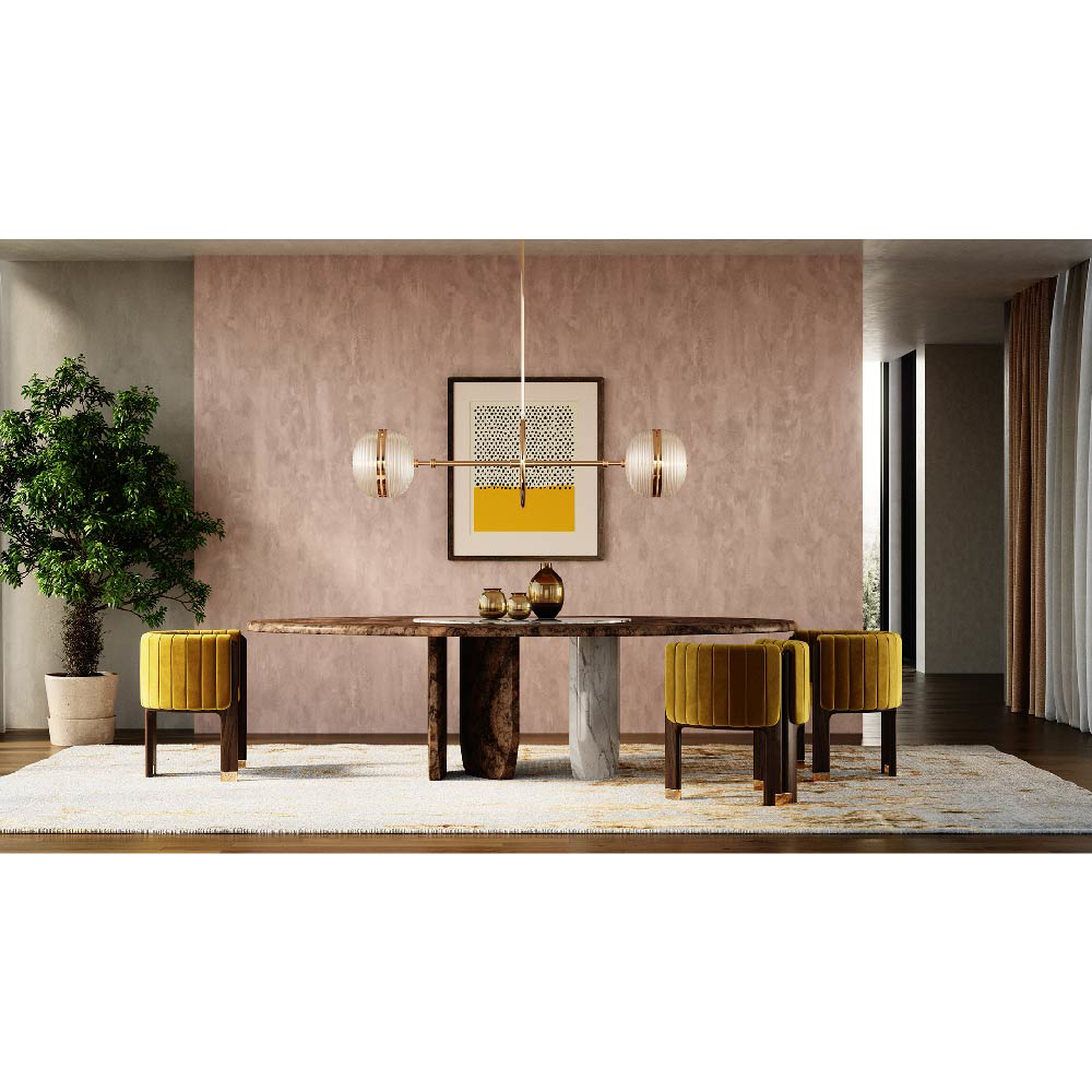 Materials and Finishes: Ash Olivato Veneer Matte, Carrara Marble and Polished Brass.