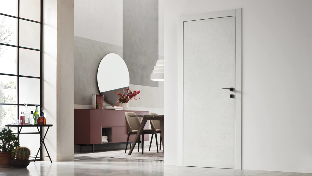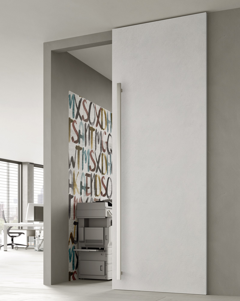 The textured finish is a feature of the door with its tactile, slightly coarse touch. A special cladding for modern spaces.
