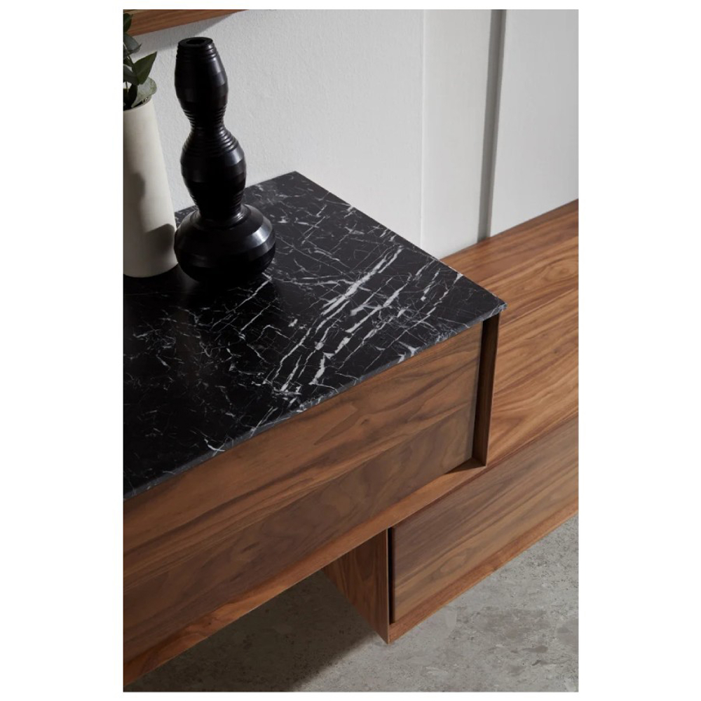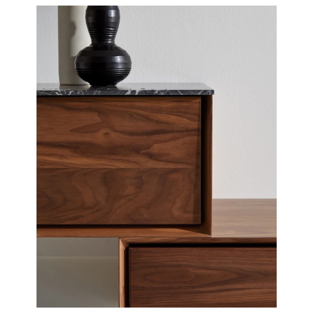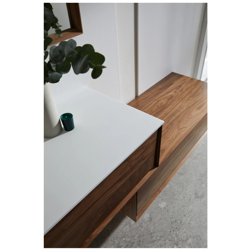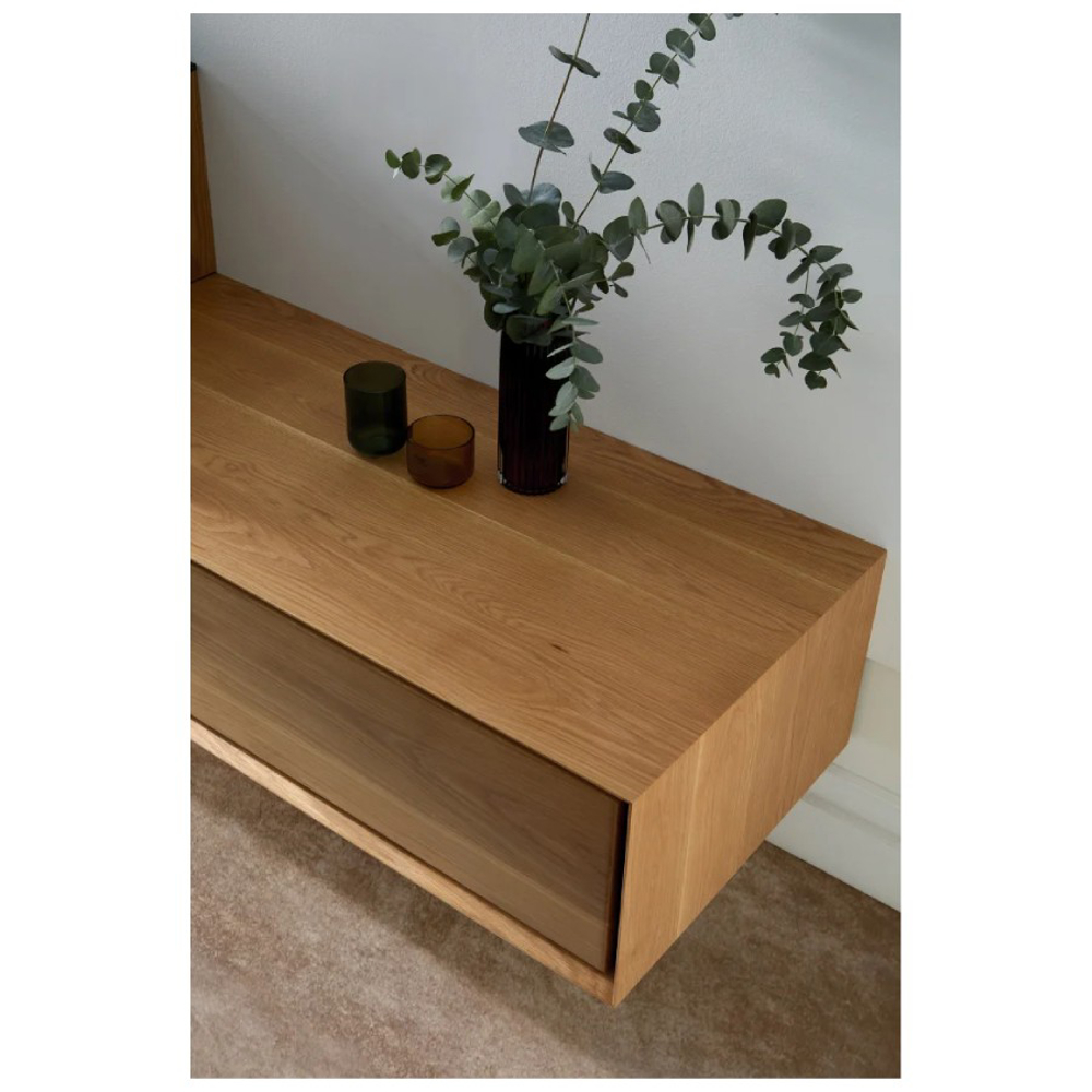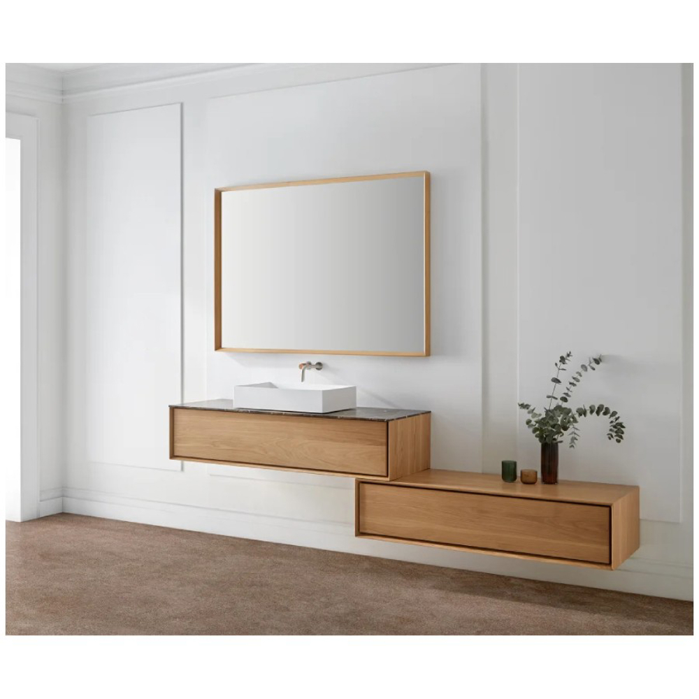 The unit is framed with a high bevel as if it is a piece of art within a picture frame. Within the frame, we were looking to highlight the idiosyncrasies of the wood with its beautiful grains and different shades that have been expertly worked on by the traditional carpenter.