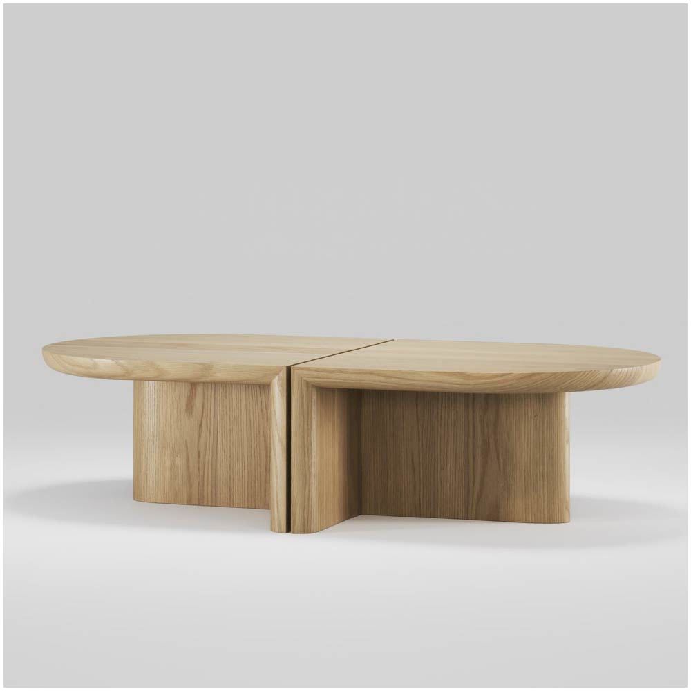 The design masterfully merges strict, geometric elements with soft, sweeping curves, striking a balance between structure and fluidity. This fusion imbues each piece with an undeniable charm, creating a captivating visual dialogue that sparks curiosity and invites closer inspection. The minimalist approach emphasizes both simplicity and functionality, while the unique blend of hard lines and gentle curves infuses the tables with a subtle yet powerful presence.