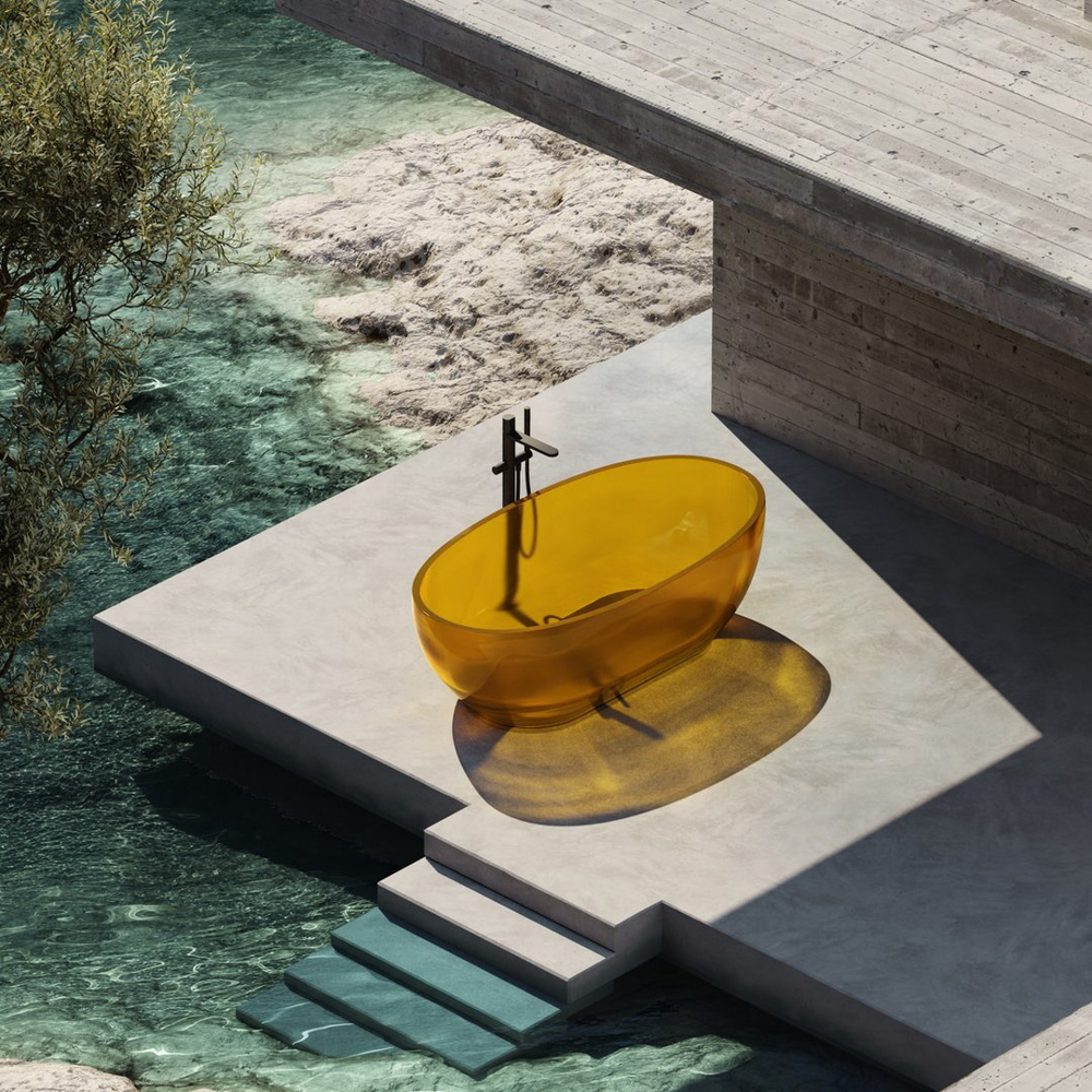 A new resin with extraordinary technical characteristics, designed to give lightness yet at the same time solidity to bathtubs and washbasins, a material that makes it possible to create soft and welcoming shapes and to restore the role of protagonist to water. The transparency of the surface makes it possible to observe the flow of the liquid, to read its movements, to follow its strength. After the launch at the last Salone del Mobile, antoniolupi has developed nine new trendy colors that are added to the Fumè proposal, thanks to which identity is awarded to the item, integrating it best in the context of bathroom style.Â
