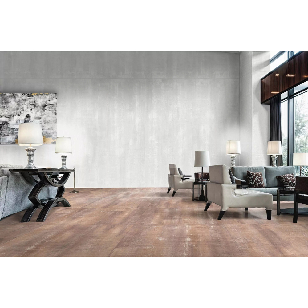 The Reggia porcelain tile collection by Apavisa is a masterful fusion of art and ceramic design, inspired by fabrics, concrete, patinas, and paper textures. This collection celebrates vintage elegance and antiquity, incorporating wear, degradation, and nostalgic imperfections as an essential part of its unique aesthetic.