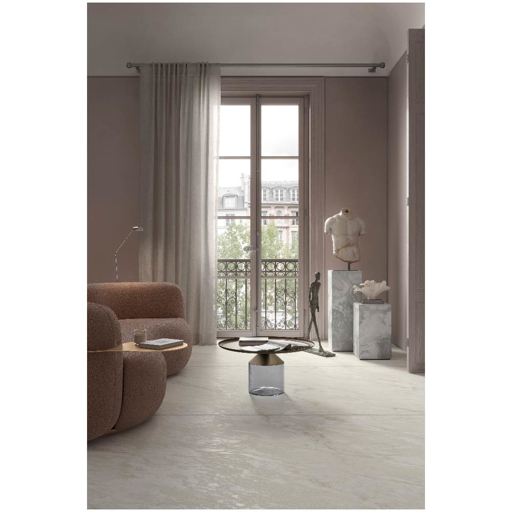 The RHYNO line captures the natural beauty and strength of stone with the precision and durability of advanced ceramic technology. Part of the Marblessa Marble collection, it embodies the greatness of matter and the art of lightness, transforming interiors with authentic, stone-inspired textures.