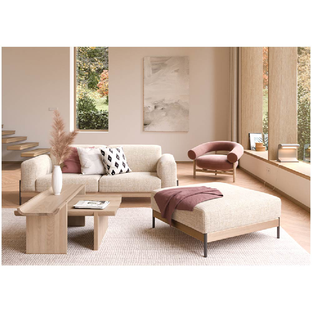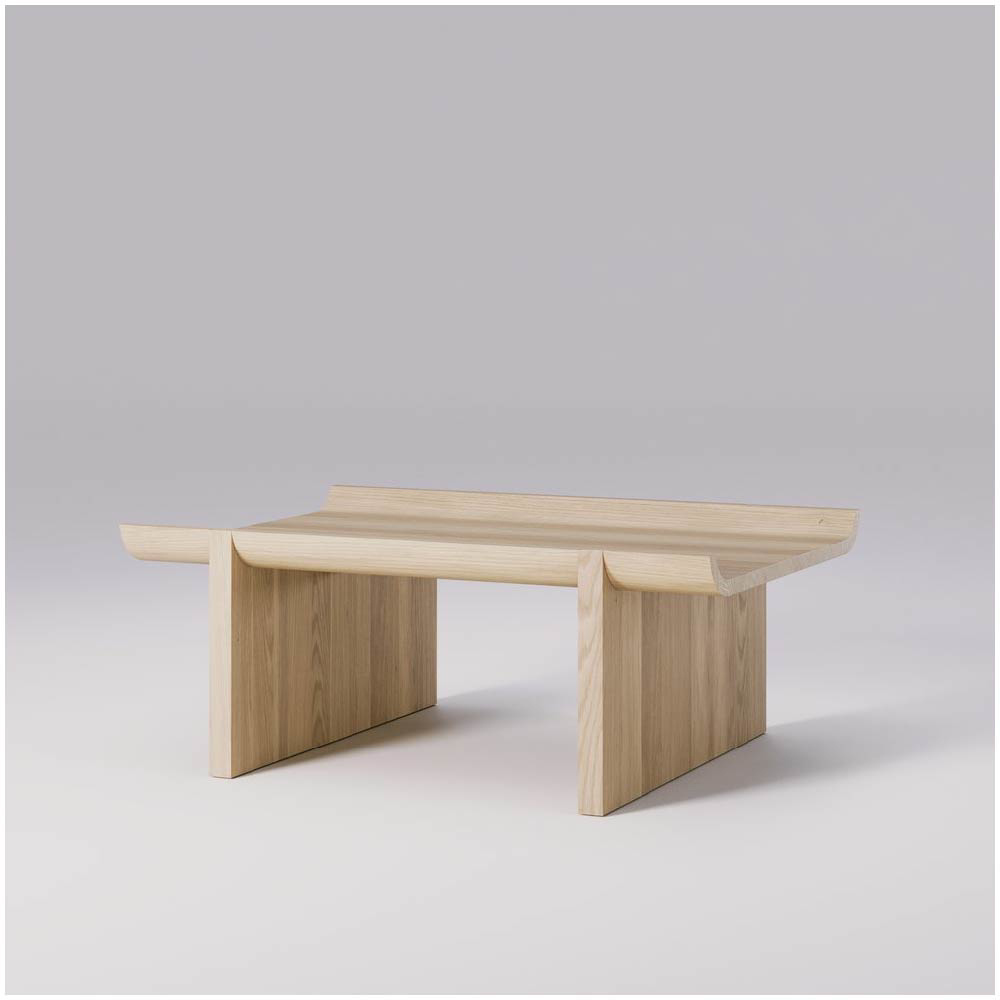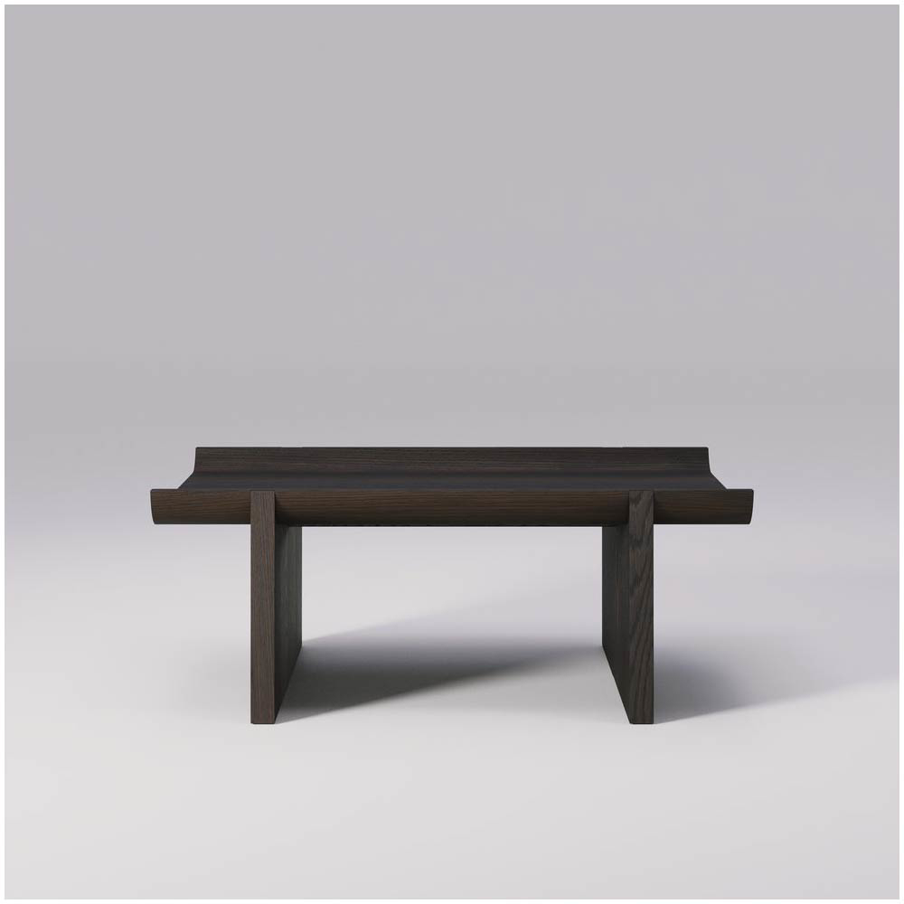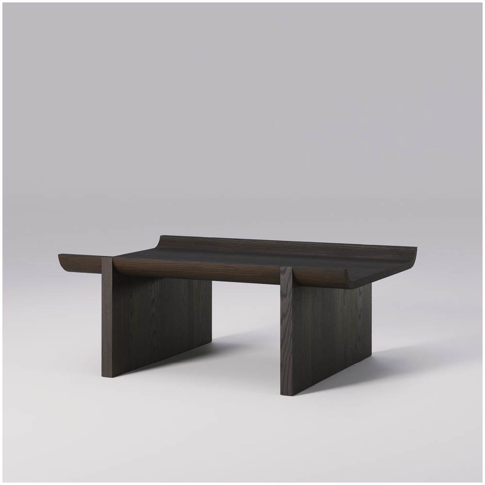 The solid oak construction ensures durability, while the natural texture and finish of the wood add warmth and character, providing a perfect contrast to the rugged, architectural inspiration behind the design.