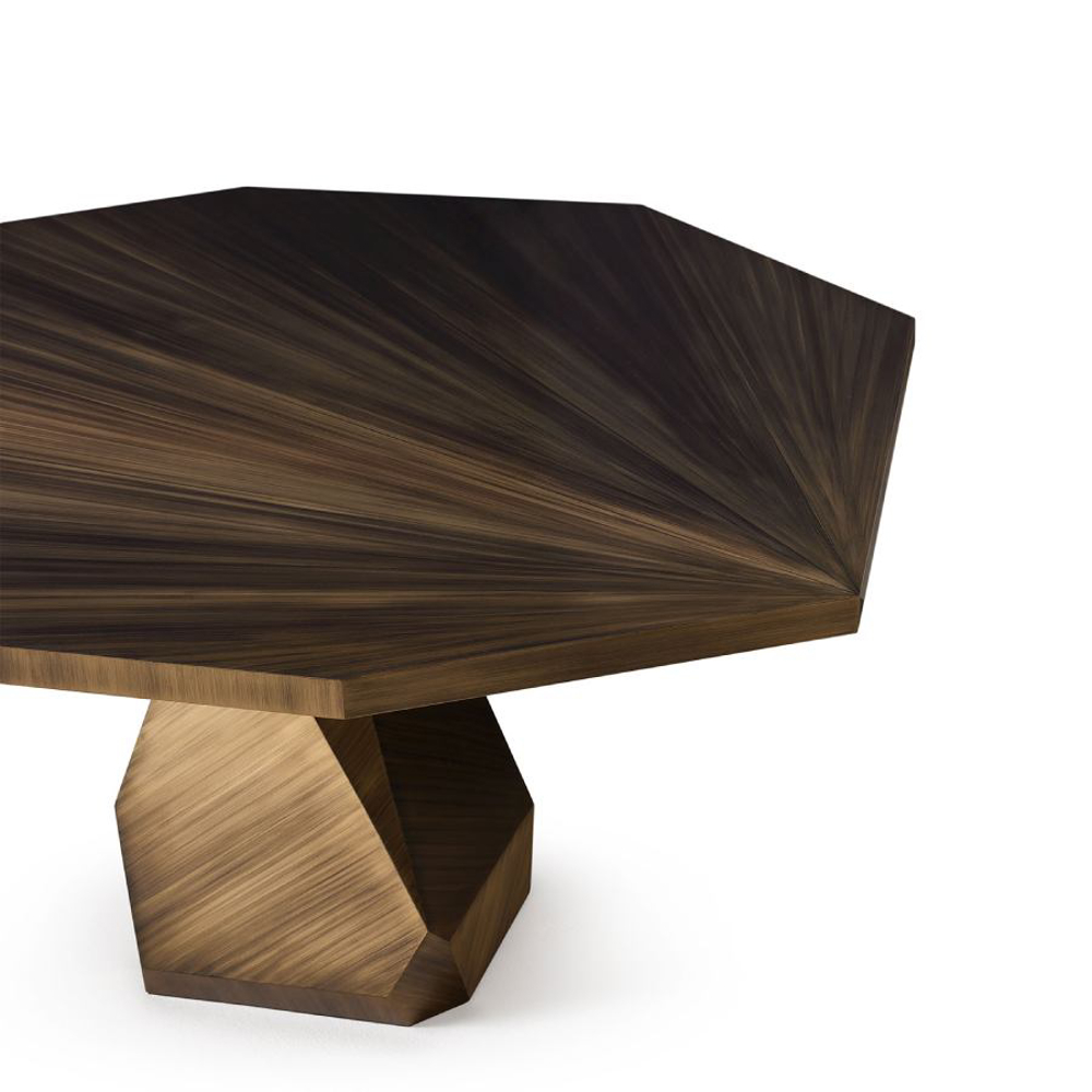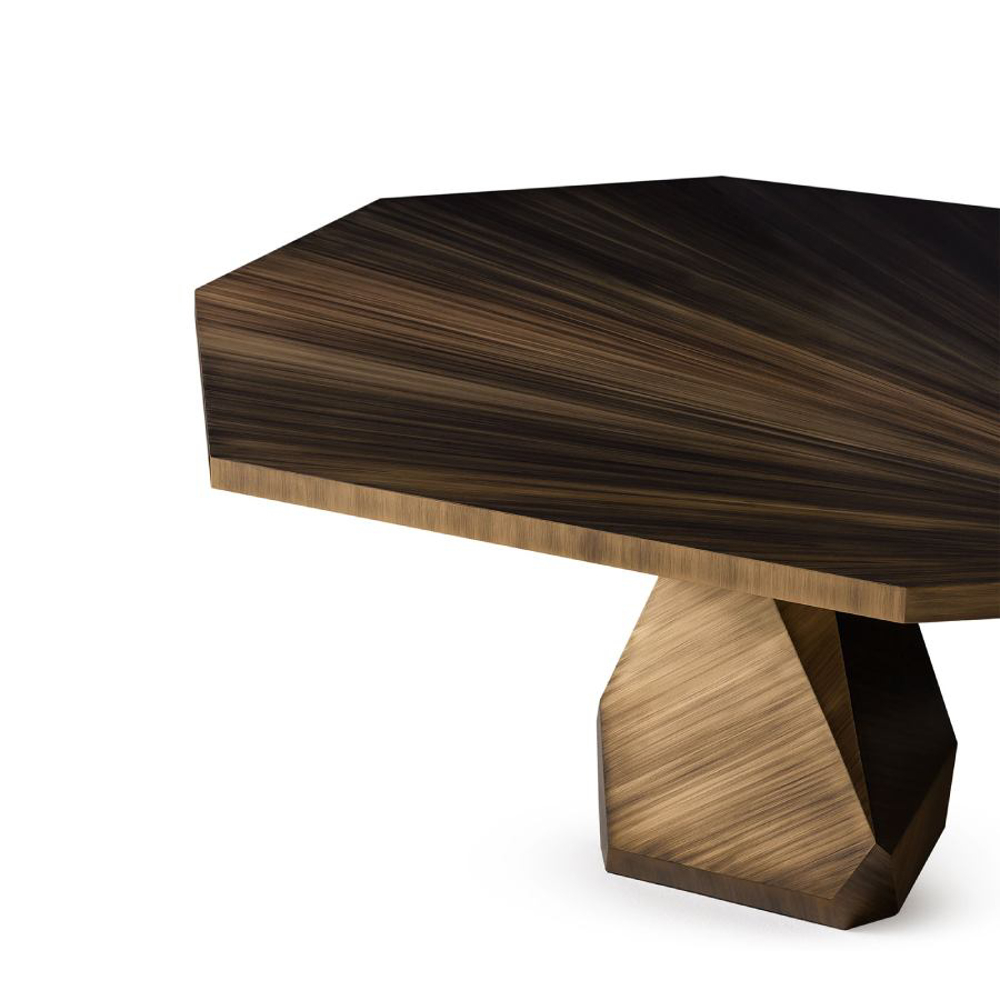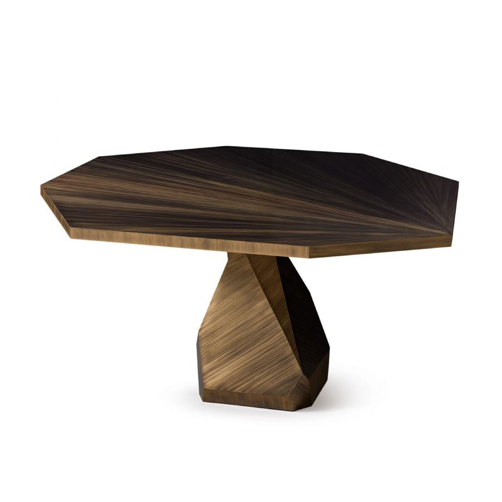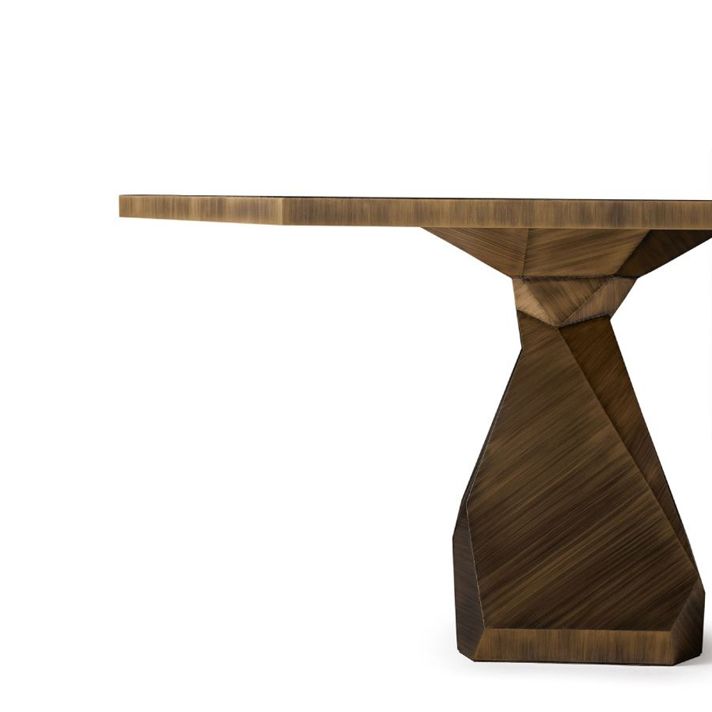 Encapsulating the commanding presence of Nature, the Rock Dining Table is a bold design statement. Handcrafted in brass, the Rock is a soothing yet unmistakable presence. The likeness of its faceted geometry can be found in Nature in raw form.