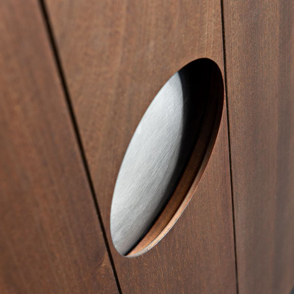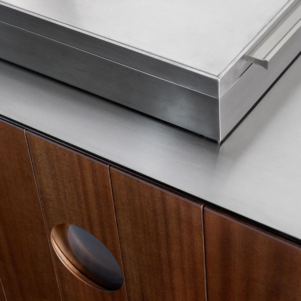 The Roller Kitchen doors are the result of a new technology developed by Exteta that combines an aluminum honeycomb panel with the naturalness of solid mahogany. The door handle celebrates the master craftsmen’s ability to artfully craft solid wood based on the ergonomic study of the opening gesture.