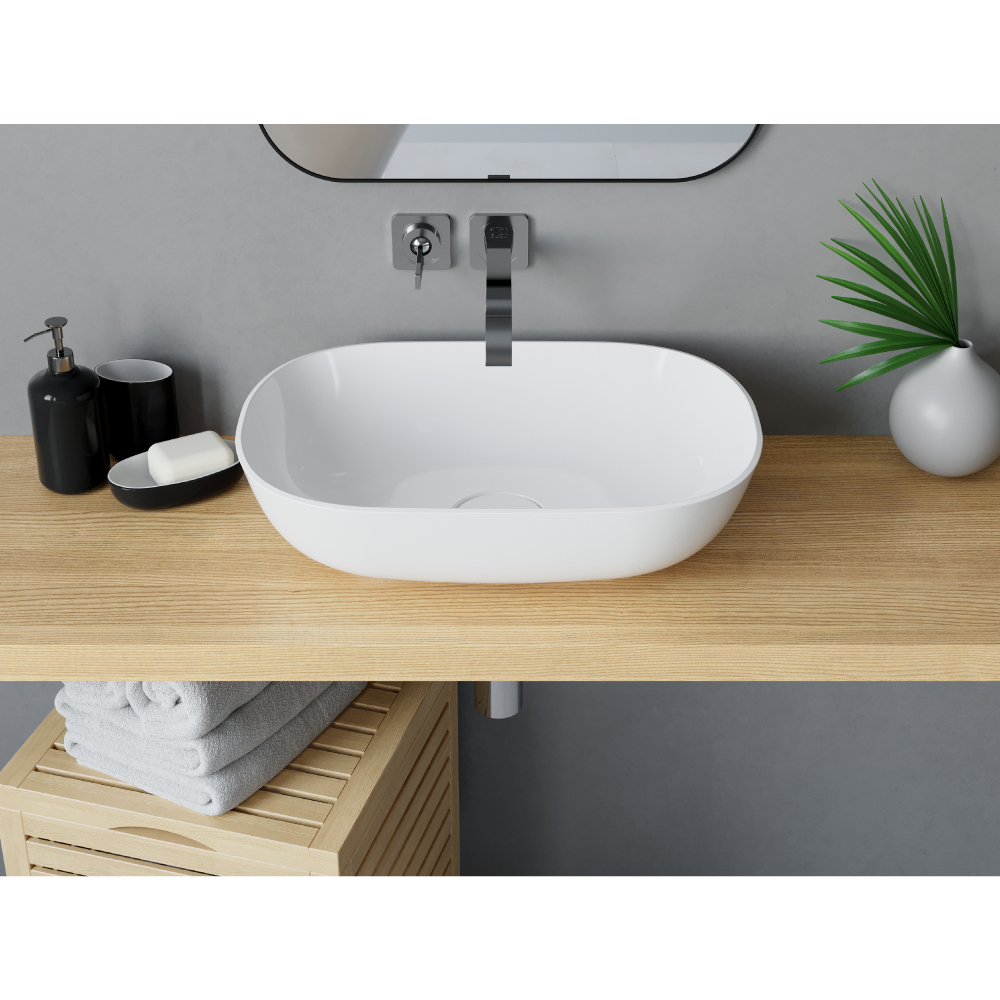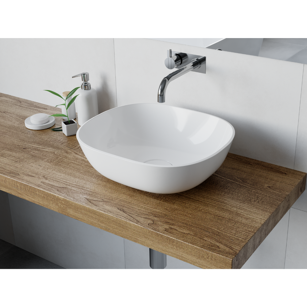 Ronda 16" Matt White Round Vessel Sink, Solid Surface