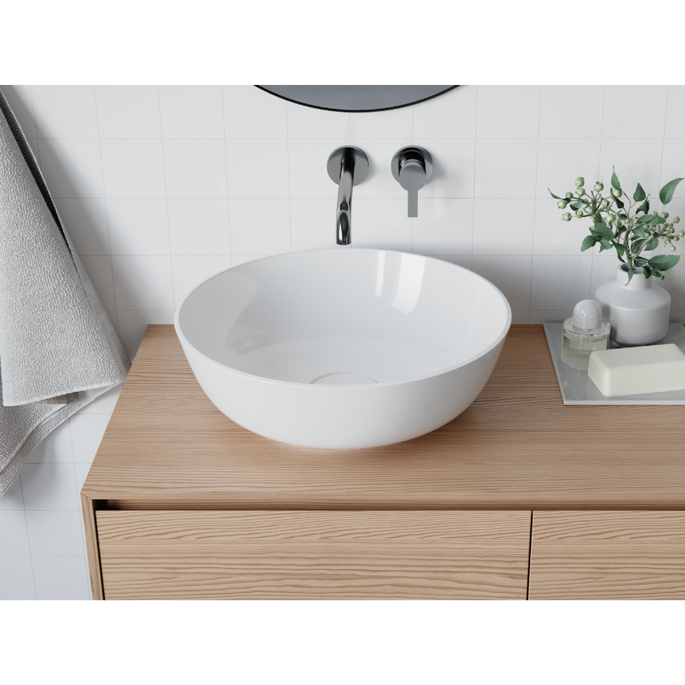 Ronda 16" Matt White Rectangular Vessel Sink, Solid Surface