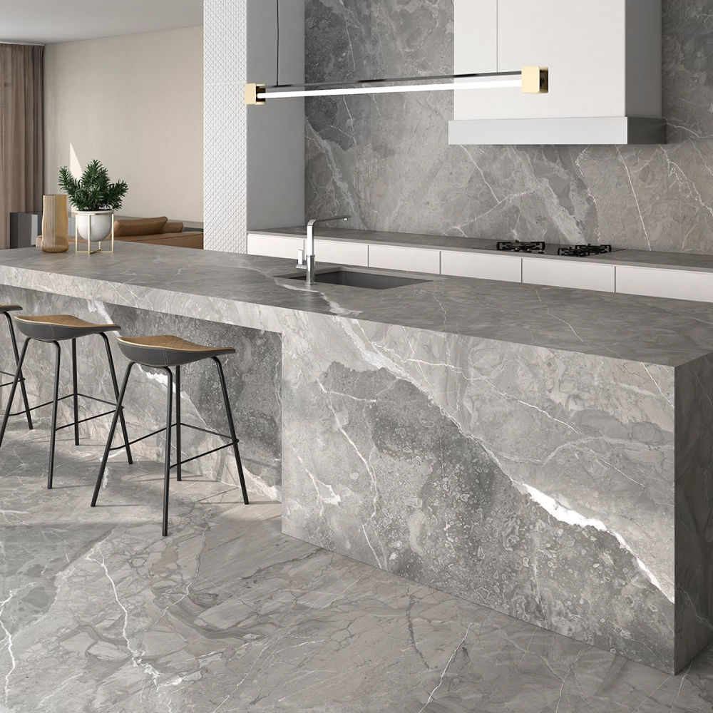 Marblessa Countertops collection is a new sintered mass that provides solutions for kitchen countertop with character and personality. Born as a result of a deep study of decorative trends and the most contemporary demands. Its large dimensions 63"x126", and the extremely high-performance technical features make it an ideal material for the most demanding product applications such as kitchen countertops.