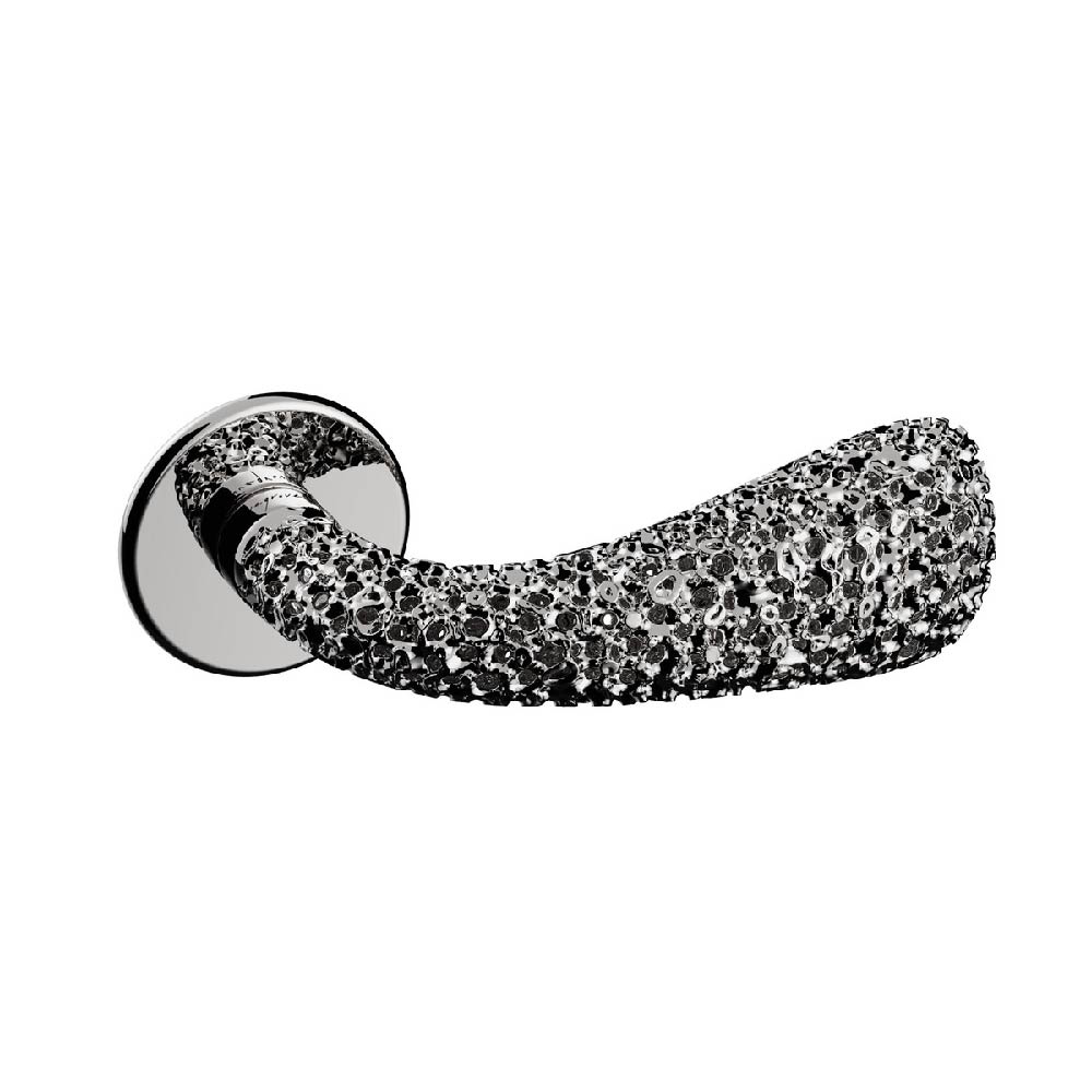 The design's luxurious essence, derived from the Latin word Luxus (meaning blossoming), evokes the feeling of something growing naturally from the door. Its form is generous to the touch and reflects light like a finely crafted jewel.