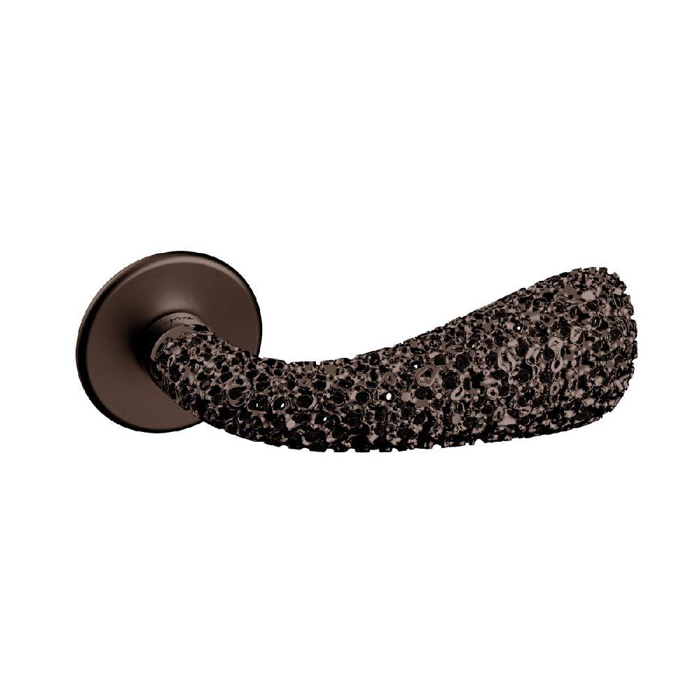 The design's luxurious essence, derived from the Latin word Luxus (meaning blossoming), evokes the feeling of something growing naturally from the door. Its form is generous to the touch and reflects light like a finely crafted jewel.
