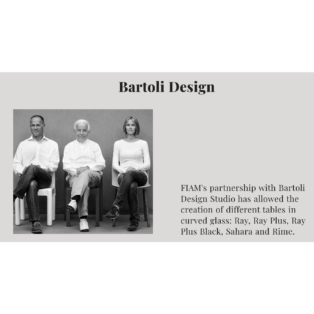 FIAM’s partnership with Bartoli Design Studio has allowed the creation of different tables in curved glass: Ray, Ray Plus, Ray Plus Black, Sahara and Rime.