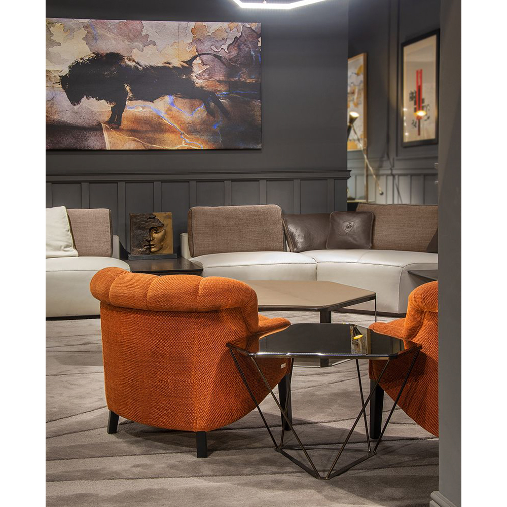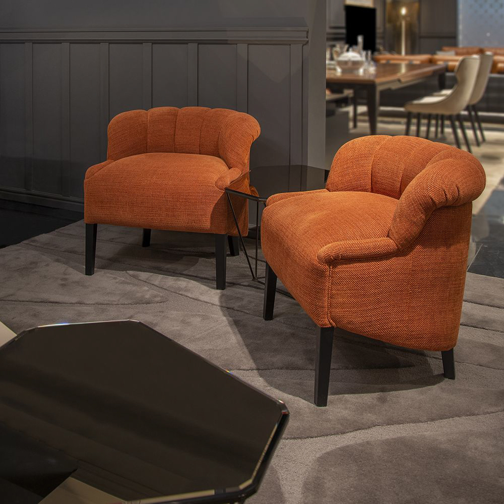 Structure in fabric Gemma col. 30/2 with Canneté, Seat in fabric Gemma col. 30/2, legs lacquered col. matt black