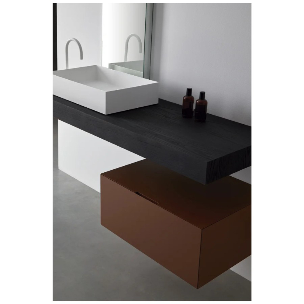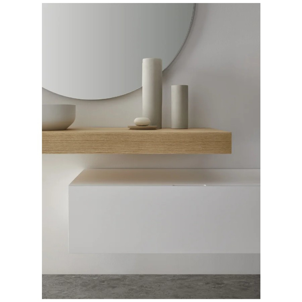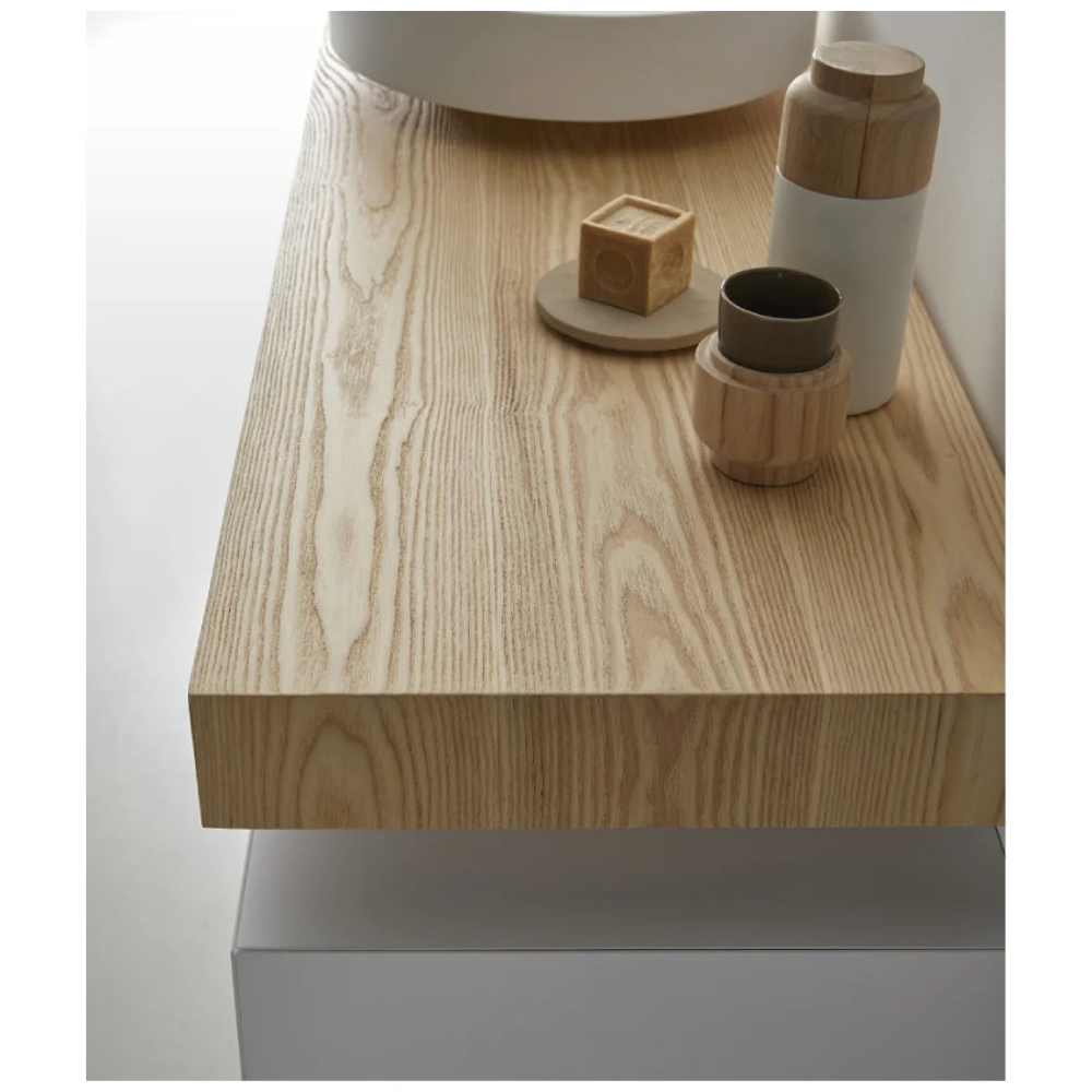 As an alternative to the more conservative ones, and in harmony with the natural and simple environments of Japanese spaces, we expand the series with the option of a countertop in natural Ash, but to which we mark the grain. The result is a vibrant and harmonious product.