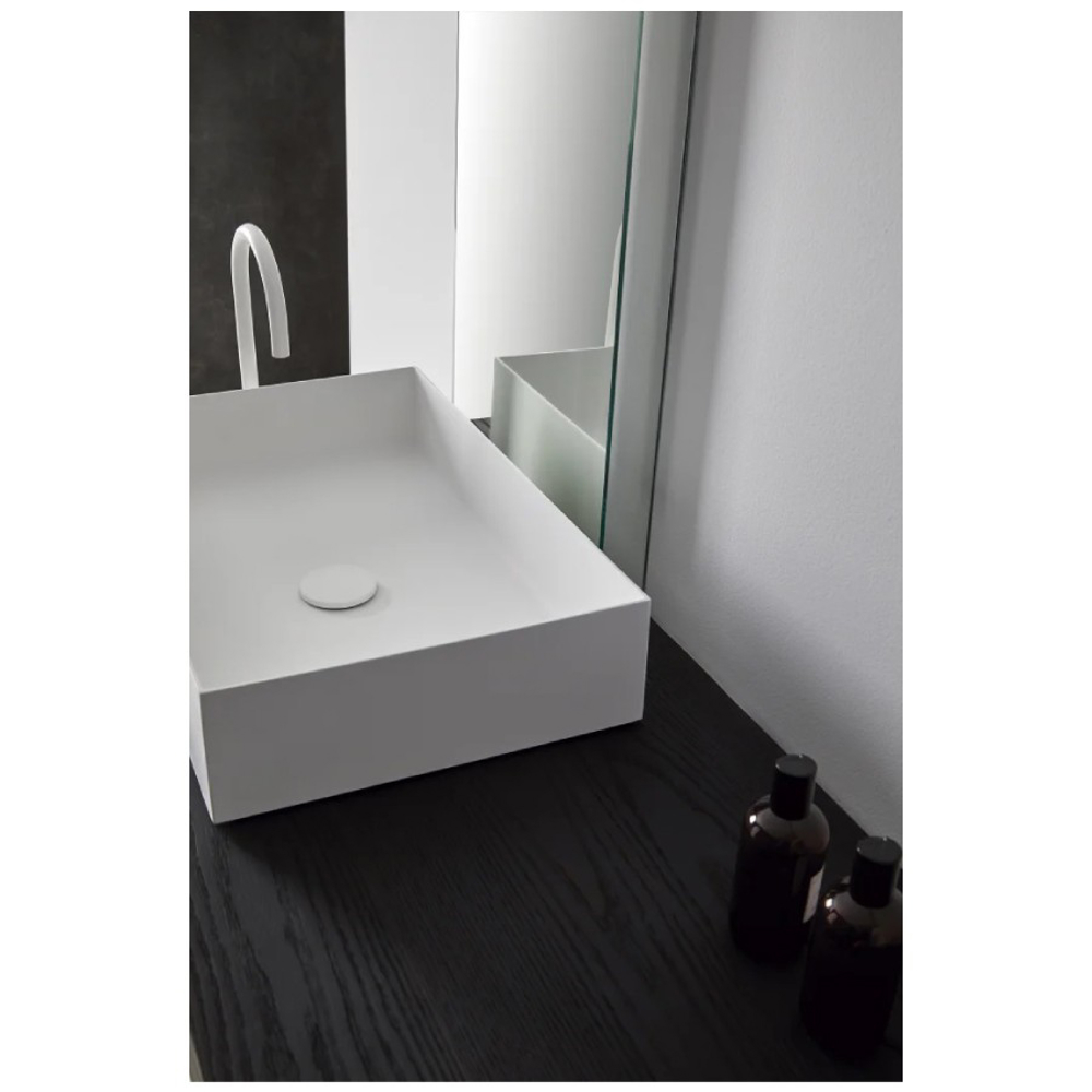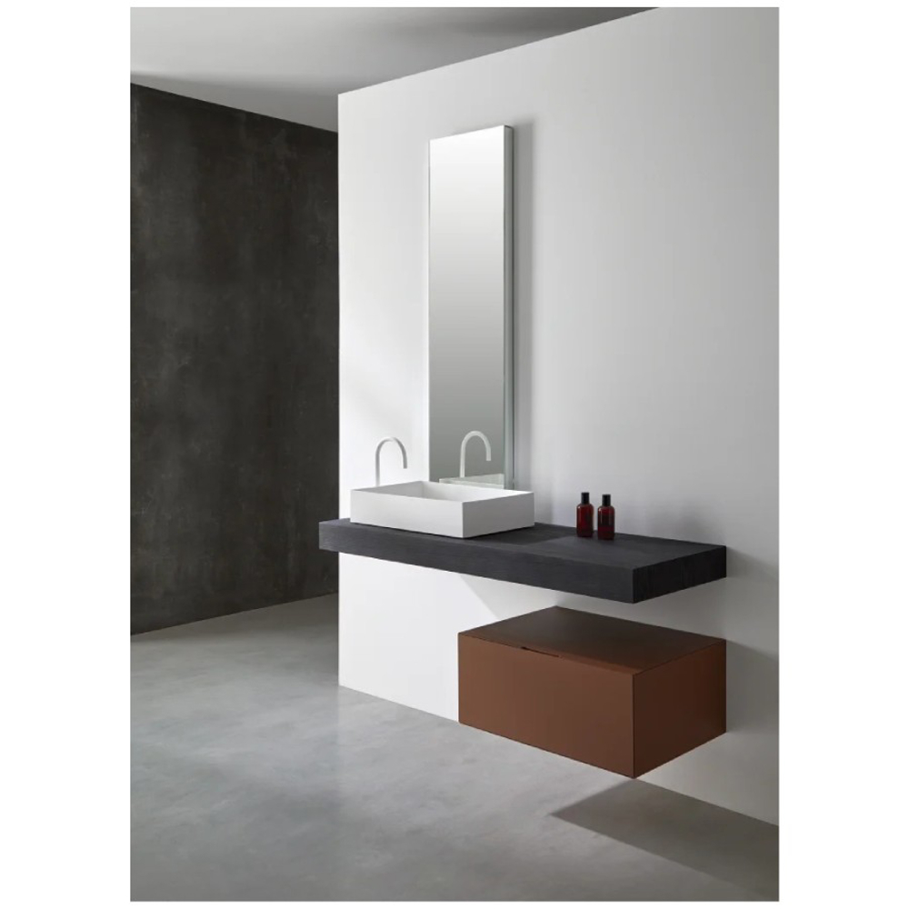 In support of this main piece, we expanded the series with a simple container, with all its joints mitered to make it as delicate as possible, and within its finishes we suggest textured ones, which balance very well with the appearance of the countertop.