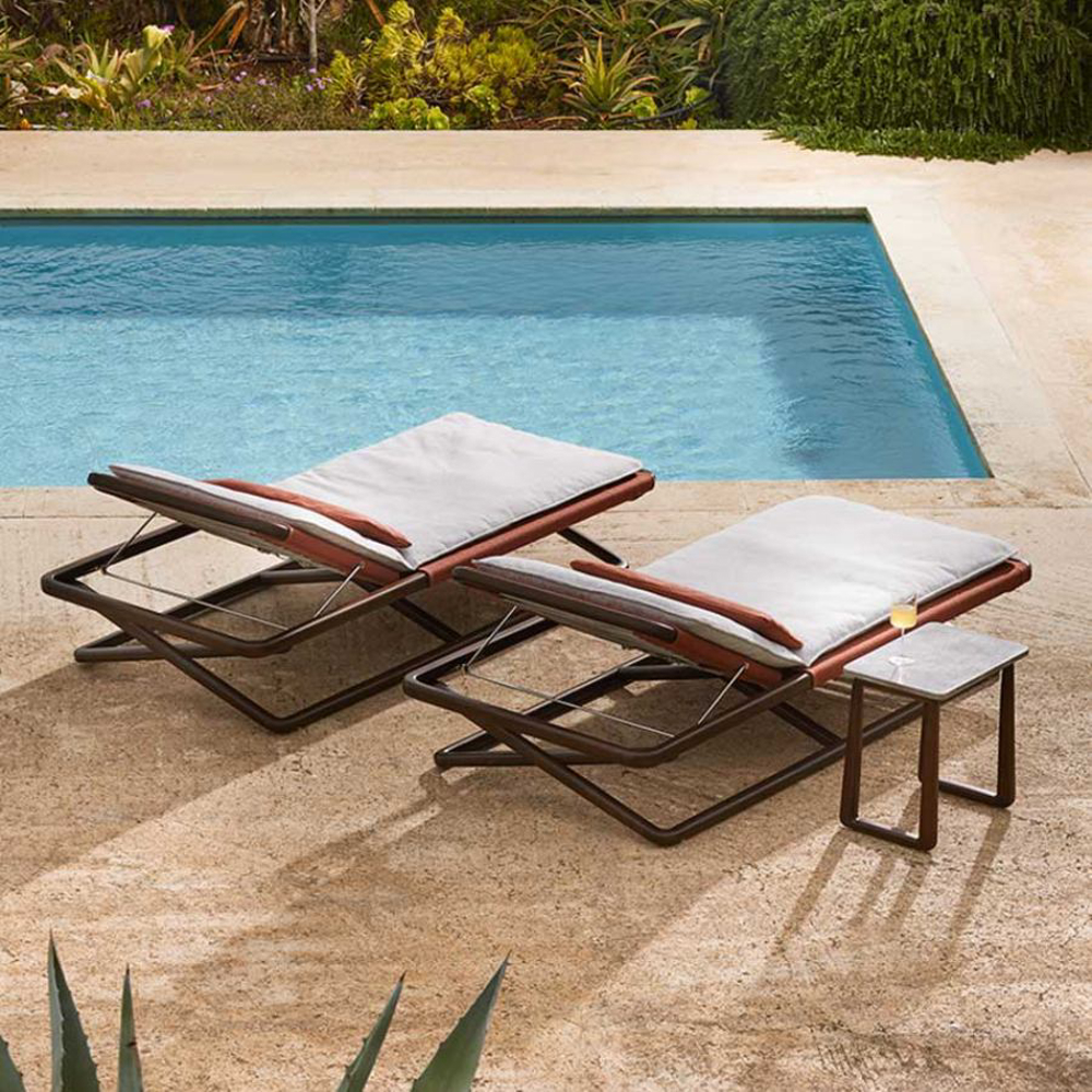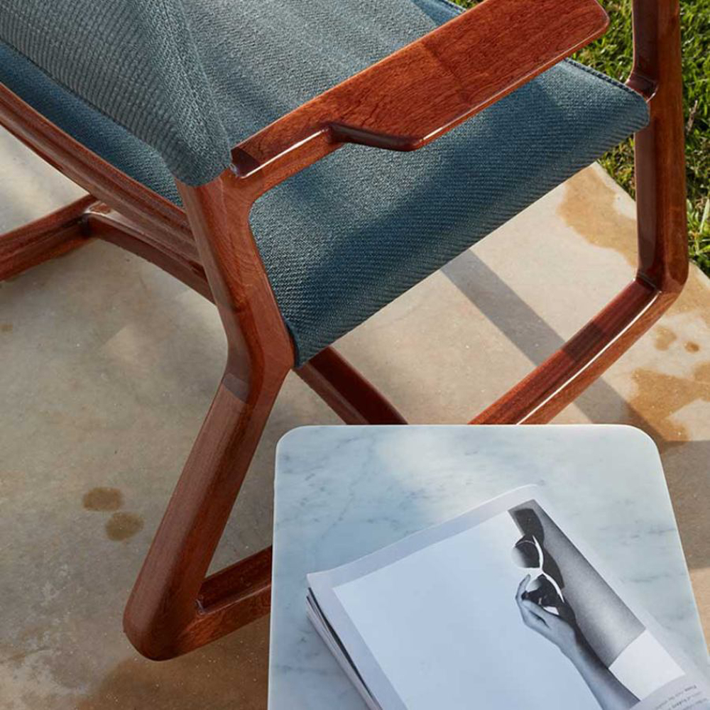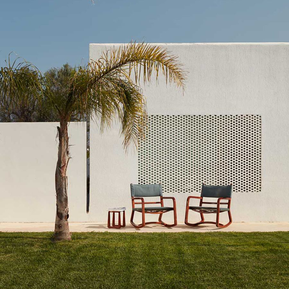 Entirely handcrafted, it is perfect to pair with the armchair and the sunbed from the same collection.