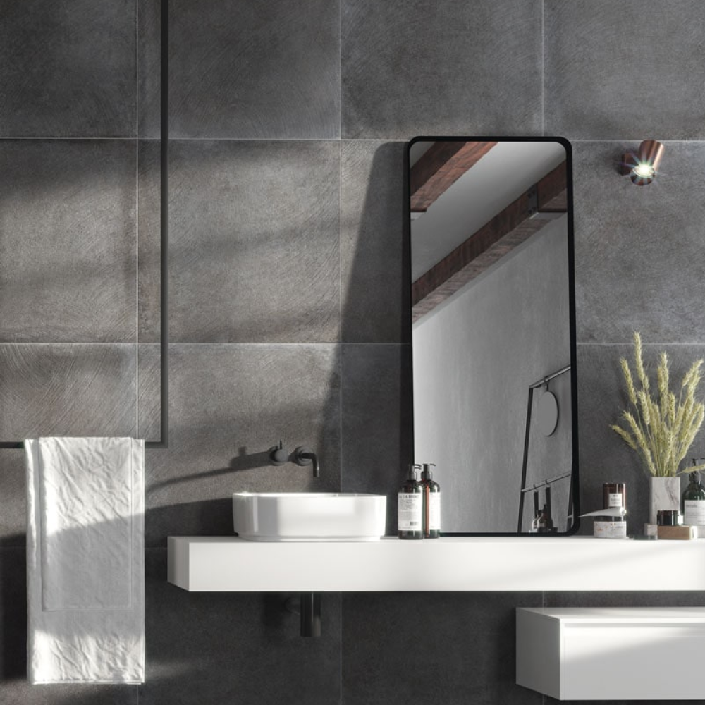The deep charcoal tones, enriched with subtle natural nuances, create a dramatic and modern aesthetic ideal for industrial-style spaces, lofts, studios, and commercial environments. By combining large and small tile formats, Lavagna allows designers to play with rhythm, geometry, and contrasts—perfect for revitalizing former industrial buildings or creating dynamic, urban-inspired spaces.