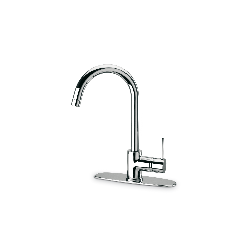 This standard single-hole, high-arc, deck-mount faucet is perfect for any kitchen. Choose between a stream or spray function. This faucet is water-efficient, lead-free, ADA compliant, and comes equipped with a ceramic disc cartridge. The Viktoria is made with solid brass construction and 100% exquisitely Italian made.