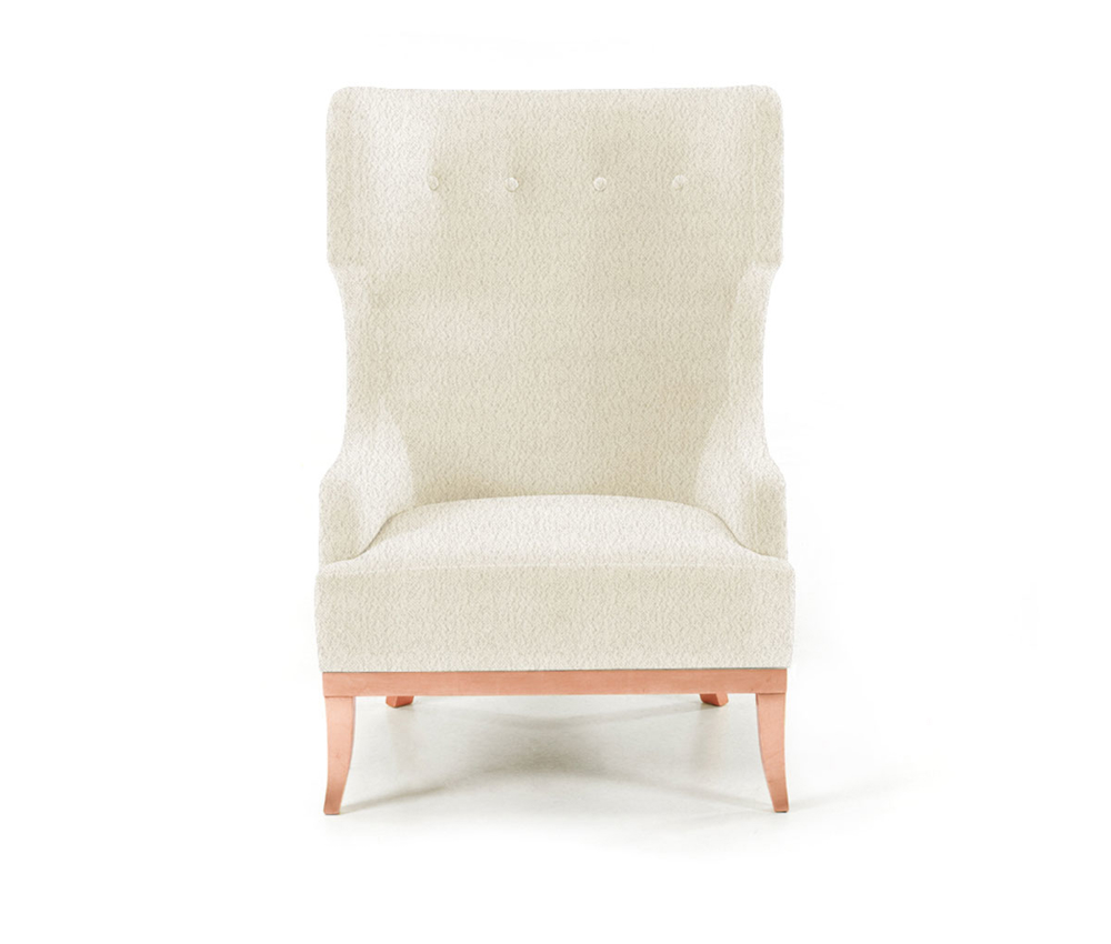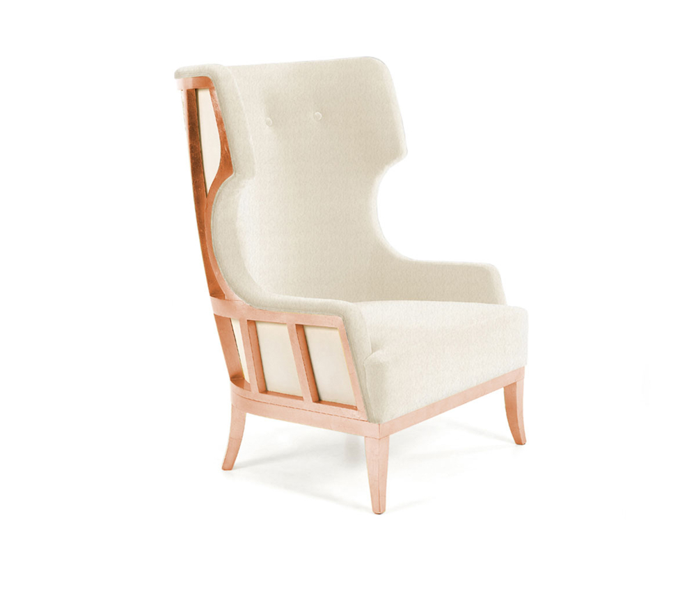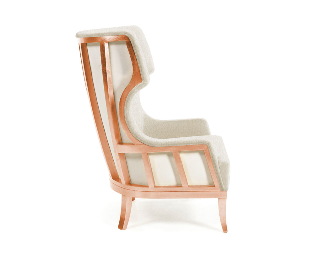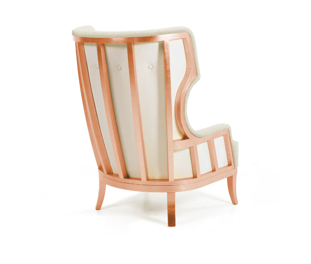 LEGS AND FRAME: Solid beech frame in copper leaf with gloss finishing