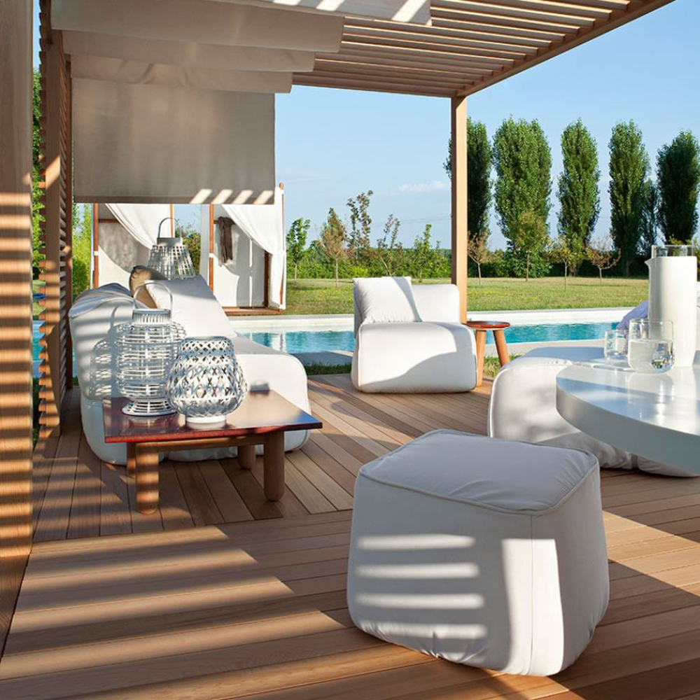 The use of nautical polyurethane foam for the whole structure, playing with different consistencies and shapes, create the supreme level of comfort and seating freedom, without compromising the wonderful lightness of the design.