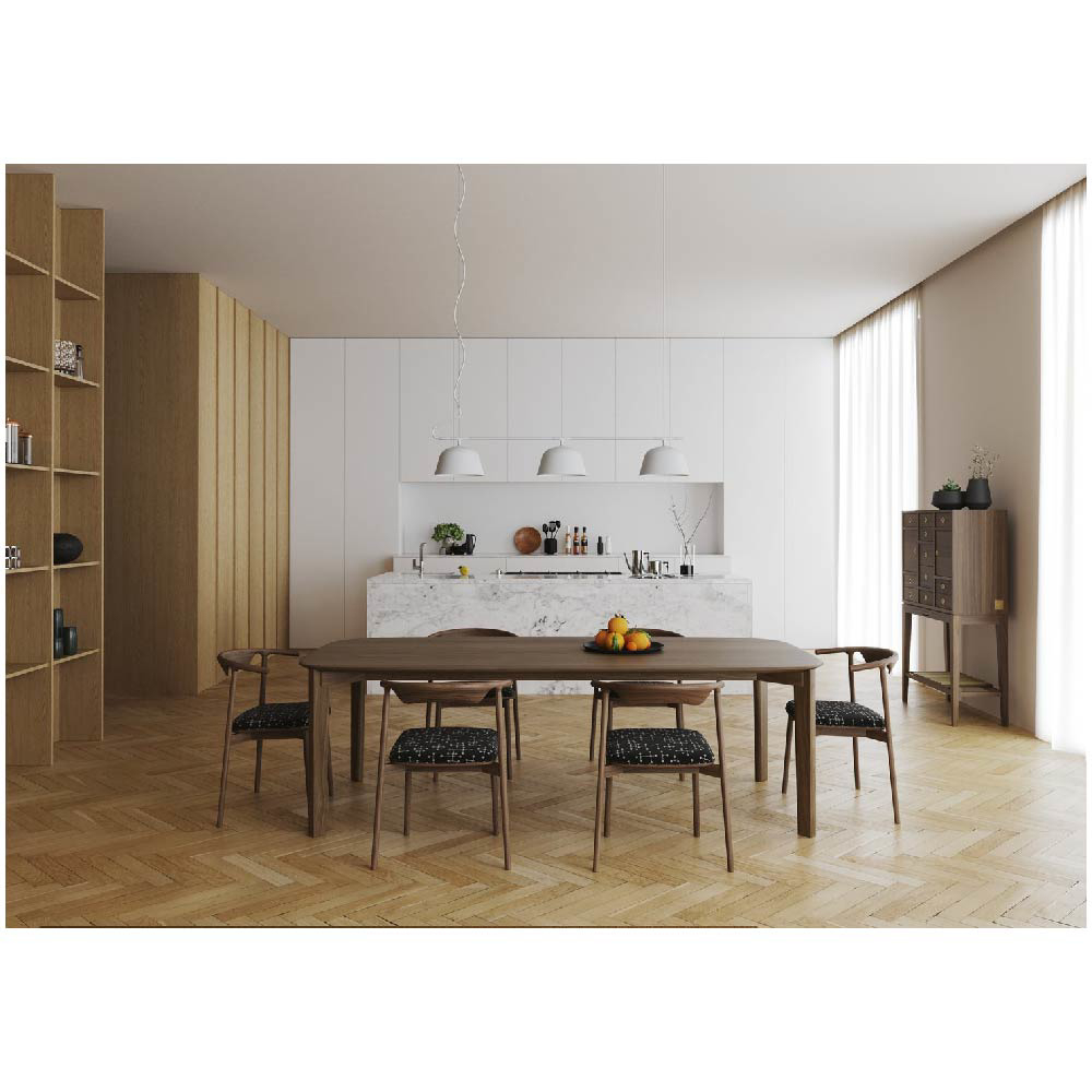 The careful balance between clean lines, curves, and joinery speaks to the harmony of both design and craftsmanship, ensuring Soma remains a standout in any home. Whether hosting a dinner party or enjoying a quiet meal, this table enhances the experience with its inviting, refined presence.