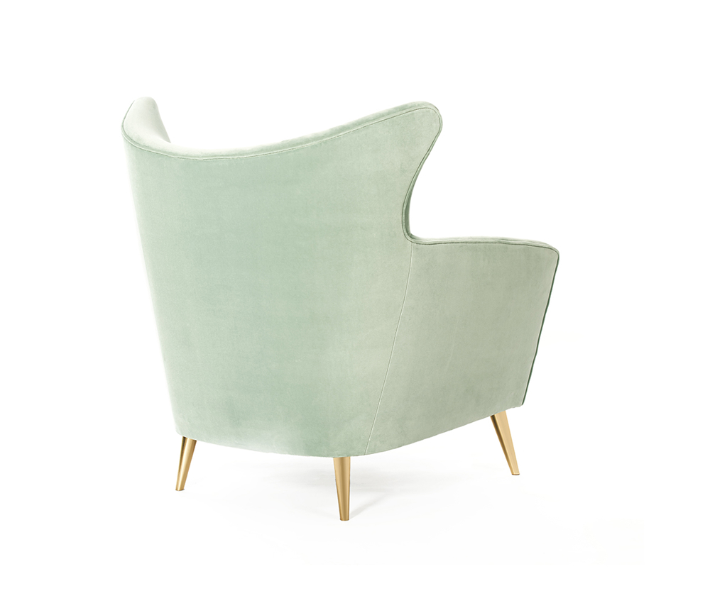 Available upholstered, Brass, Nickel or Copper in Polished or Brushed finishing; Rosewood or Ebony veneer, solid Walnut, Wengé stain or lacquer in all RAL colors, in matt or gloss
