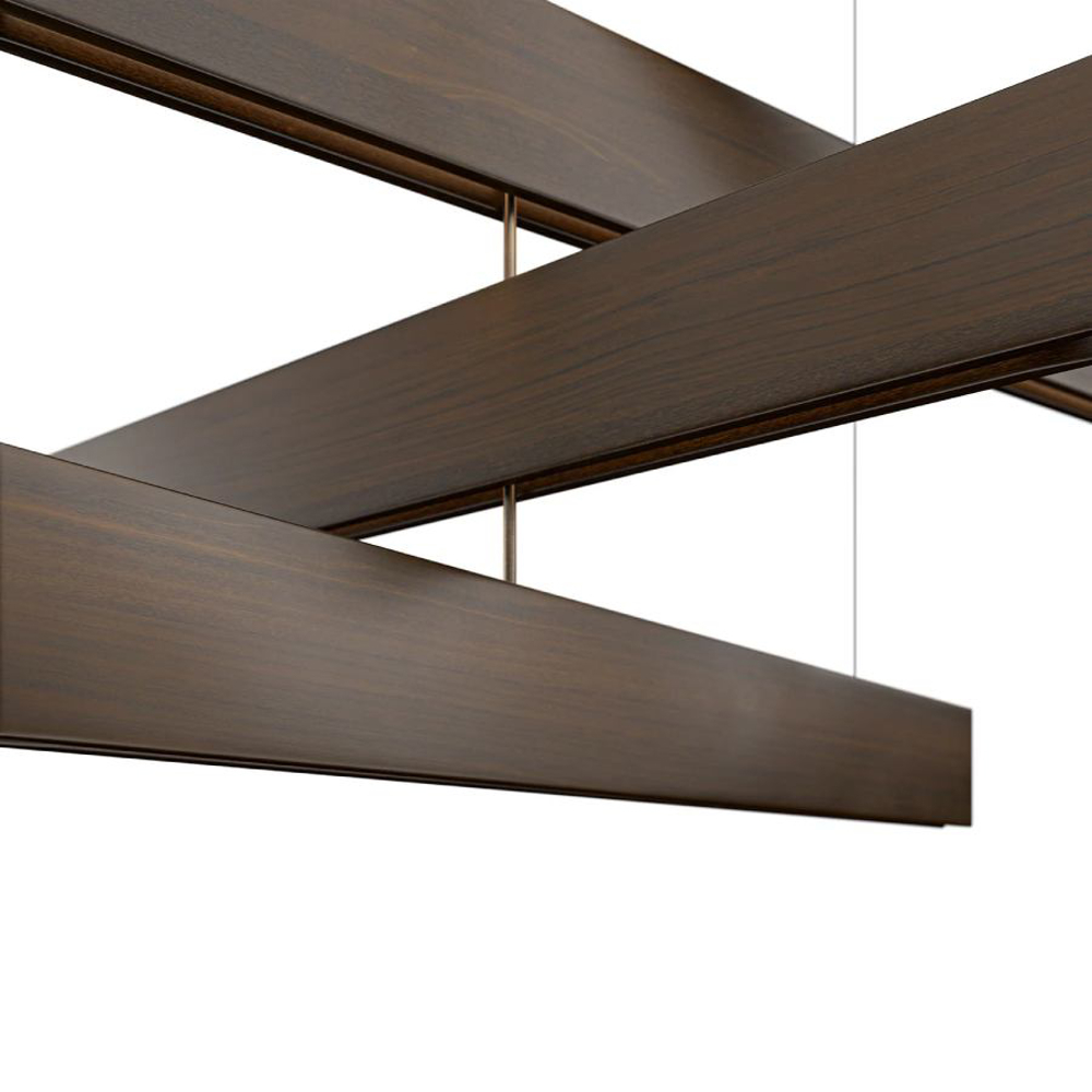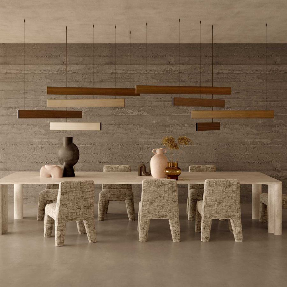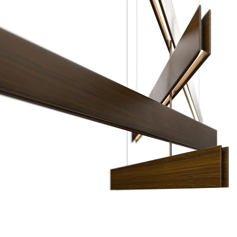 Essential and elegant, the shapes and materials of the lamp match many of the furniture items in the Exteta collection. Stecca is composed of four elements in Sapelli mahogany. The lighting bodies, hidden inside, can be oriented according to the user’s needs.