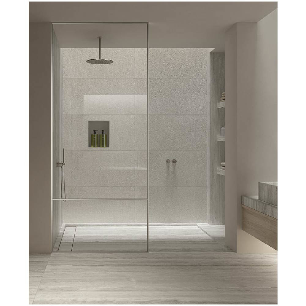 Creating a bespoke porcelain stoneware shower tray is an ideal solution when designing a unique, modern bathroom. A product which can be totally customized in terms of dimensions, surfaces and patterns available, with the aid of a wide range of tiles from our collections, in the various stone, wood, concrete and metal looks.