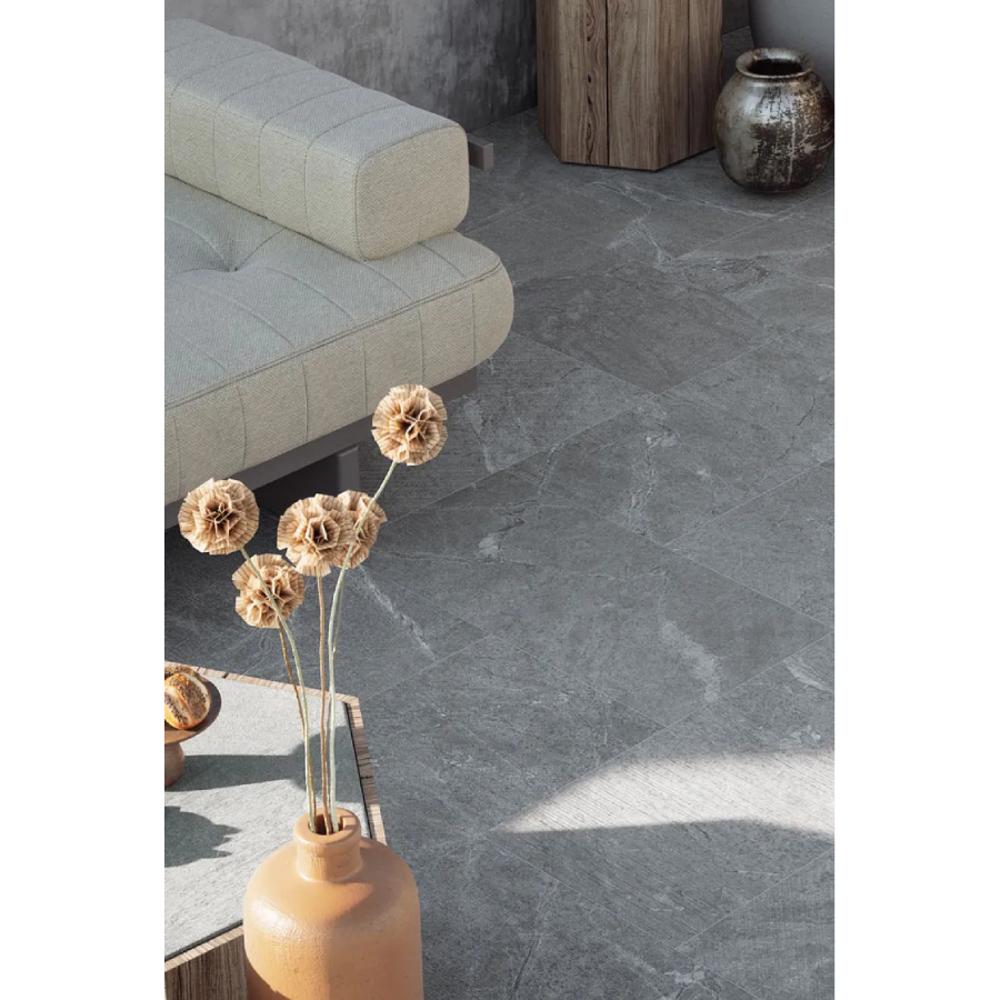 Soap Stone porcelain tile brings a bold, expressive character to contemporary design. Its richer, more colorful tones make it especially suitable for outdoor spaces, while its varied structures and shaded surfaces create a dynamic visual effect that enhances terraces, patios, walkways, and large public areas.