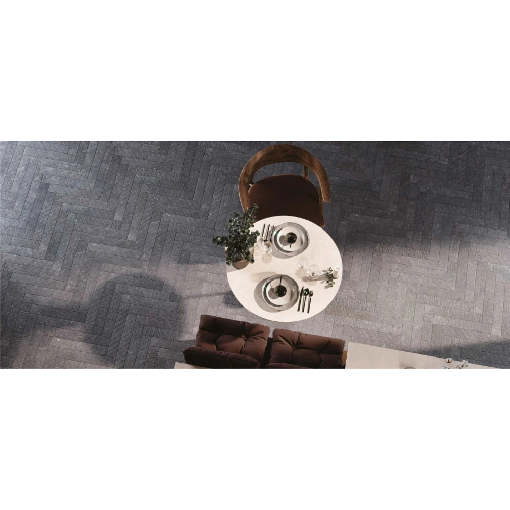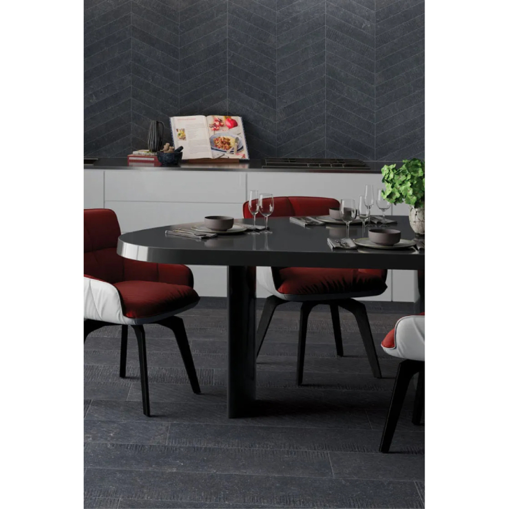 Belgian blue stone brings timeless charm and technical excellence to modern kitchen design. Realistic, resistant, and effortless to maintain, this stone-effect porcelain stoneware perfectly captures the depth and character of the original material—enriched with subtle fossil-like markings that recall ancient geological traces.