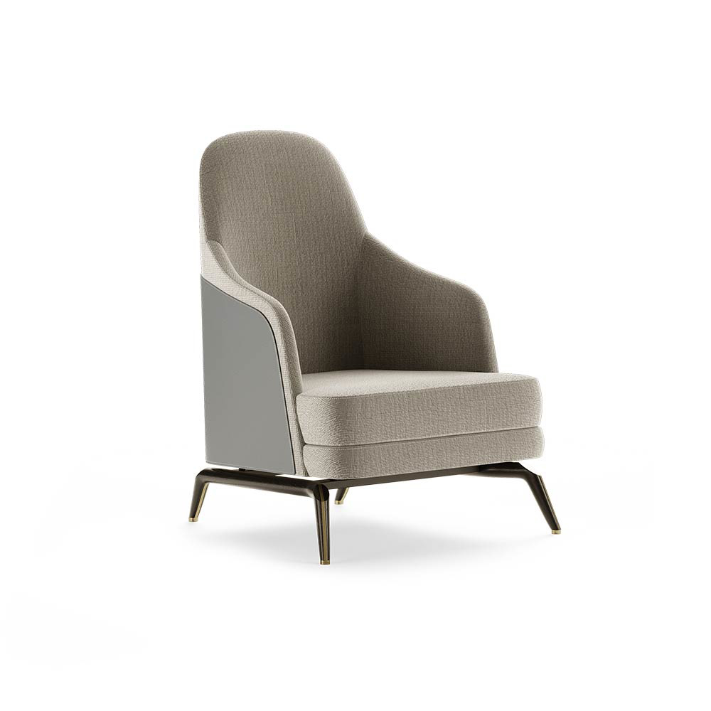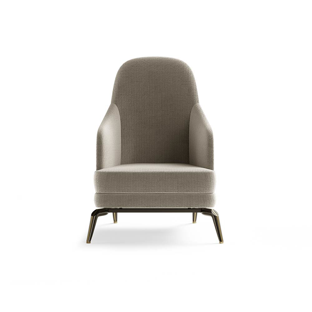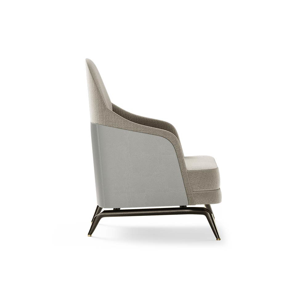 Materials and Finishes: Black Stained Oak Matte Wood, Fabric and Brushed Brass