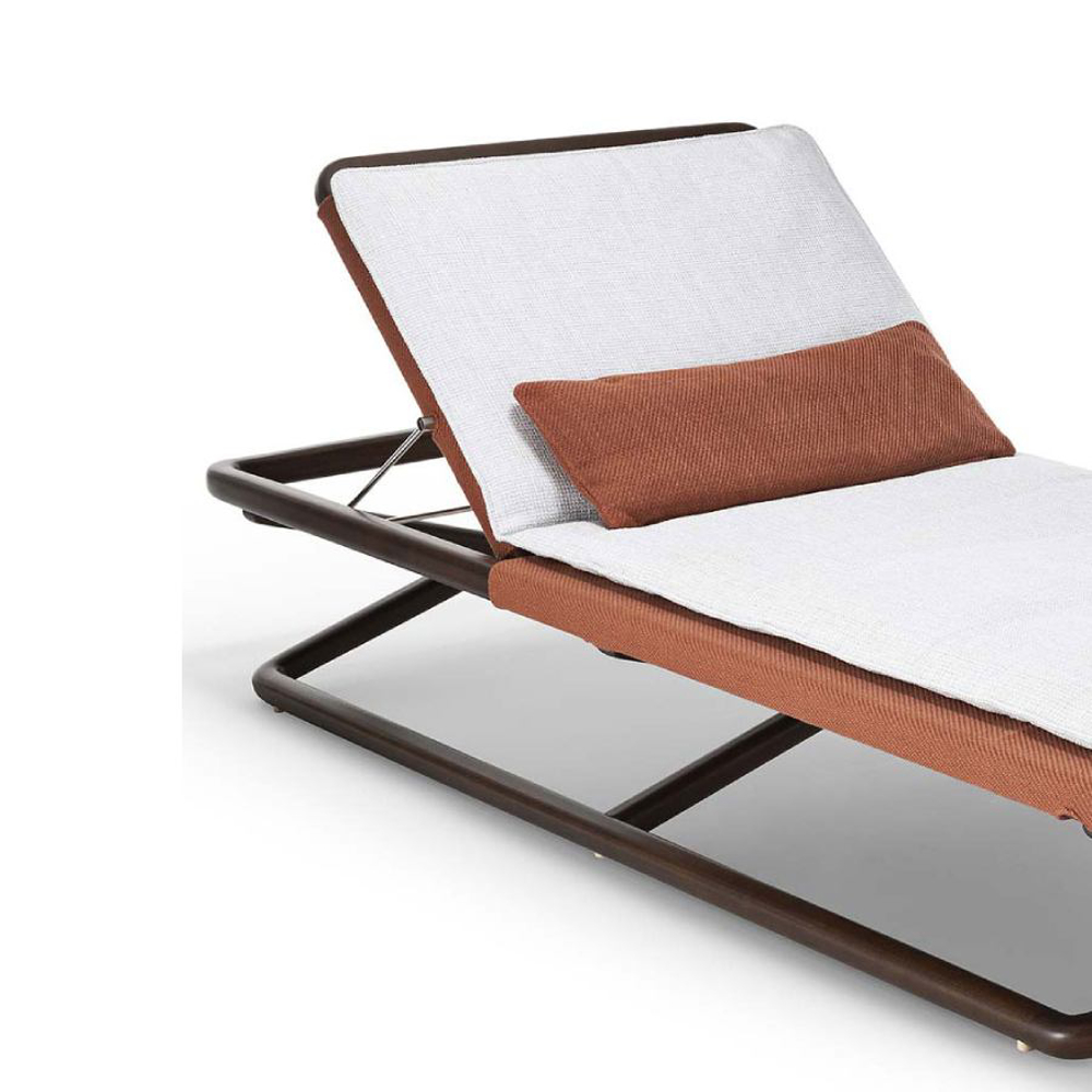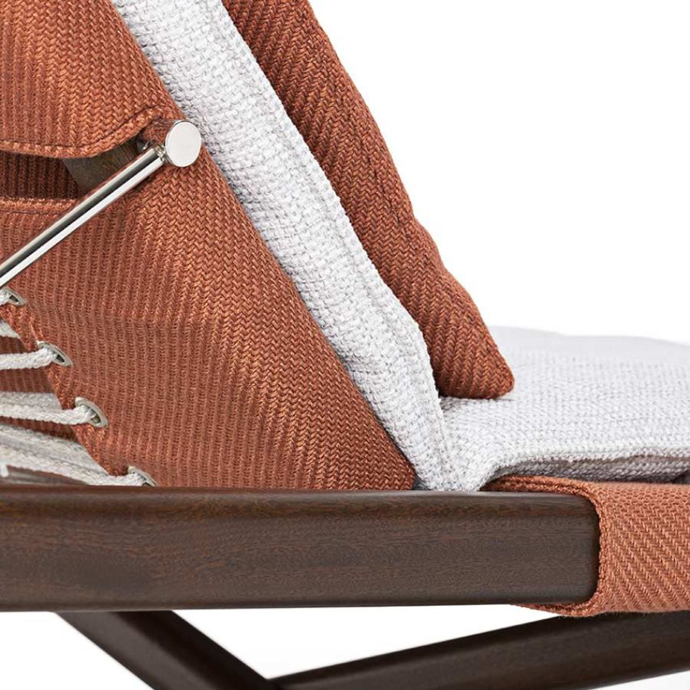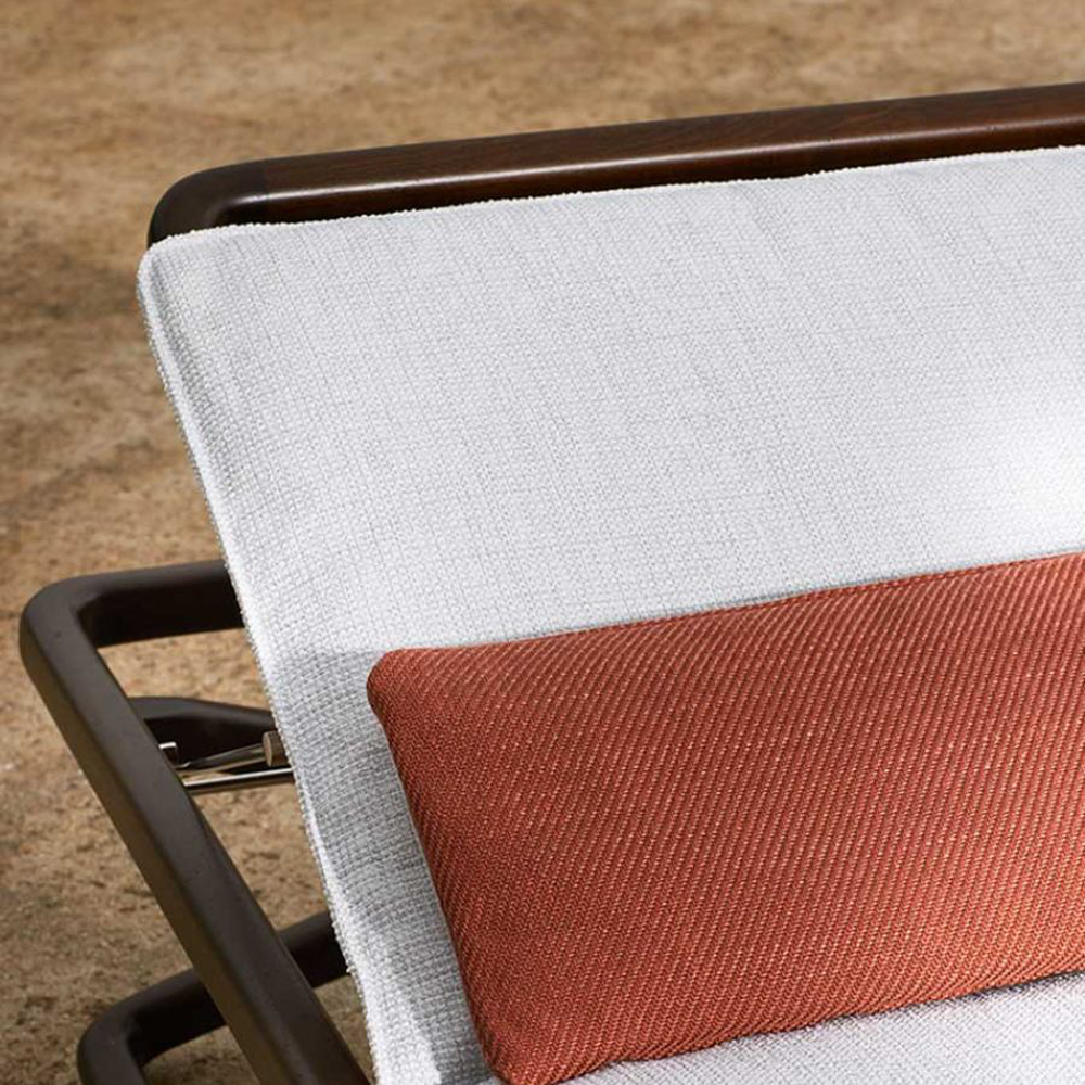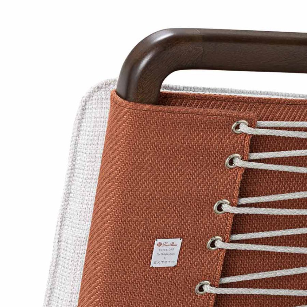 Its generous size makes it welcoming. Made entirely by hand, the precious fastening and weaving system of ropes accentuates the Loro Piana Interiors fabrics. The backrest is adjustable, and the seat features a lightly padded cushion that ensures comfort, along with a headrest.
