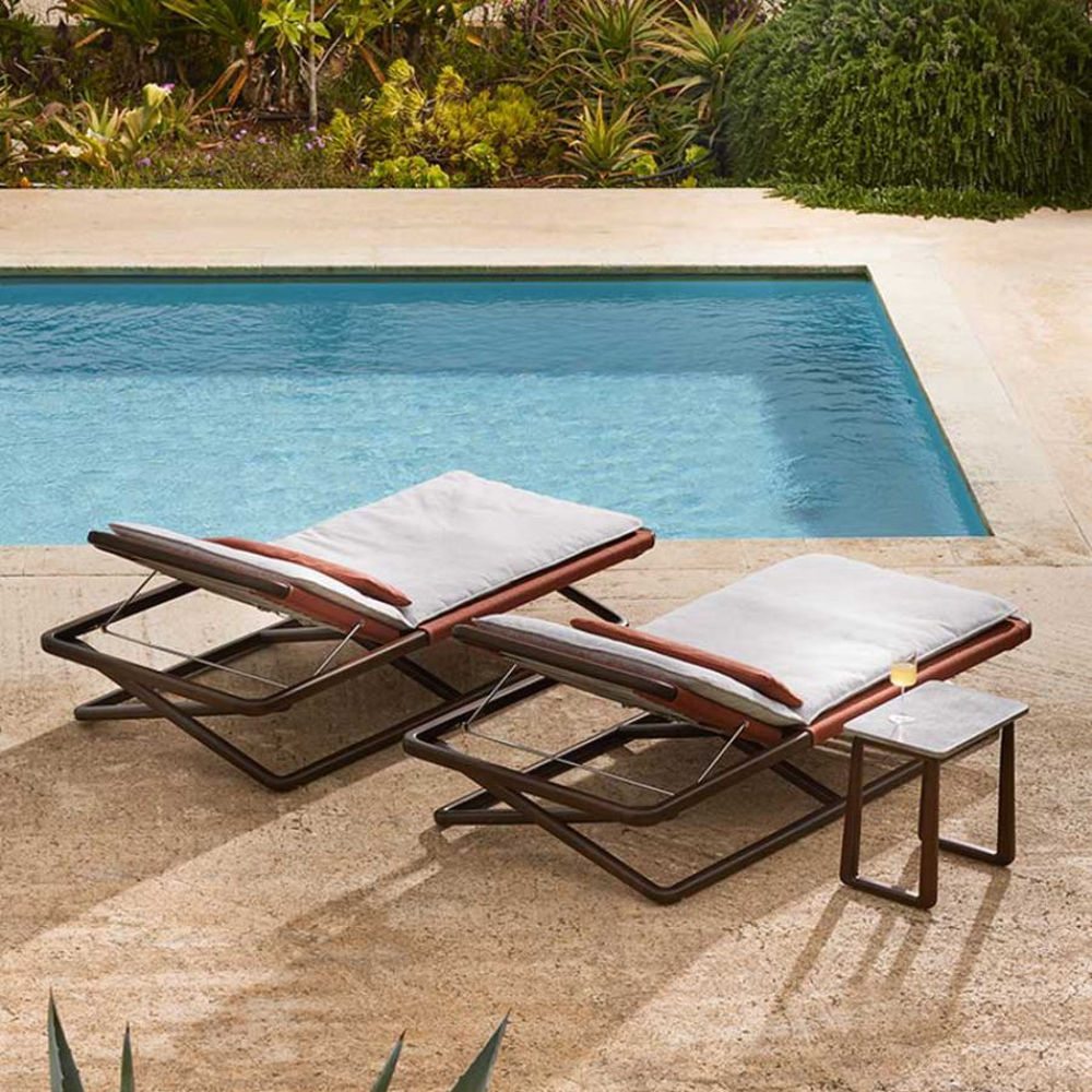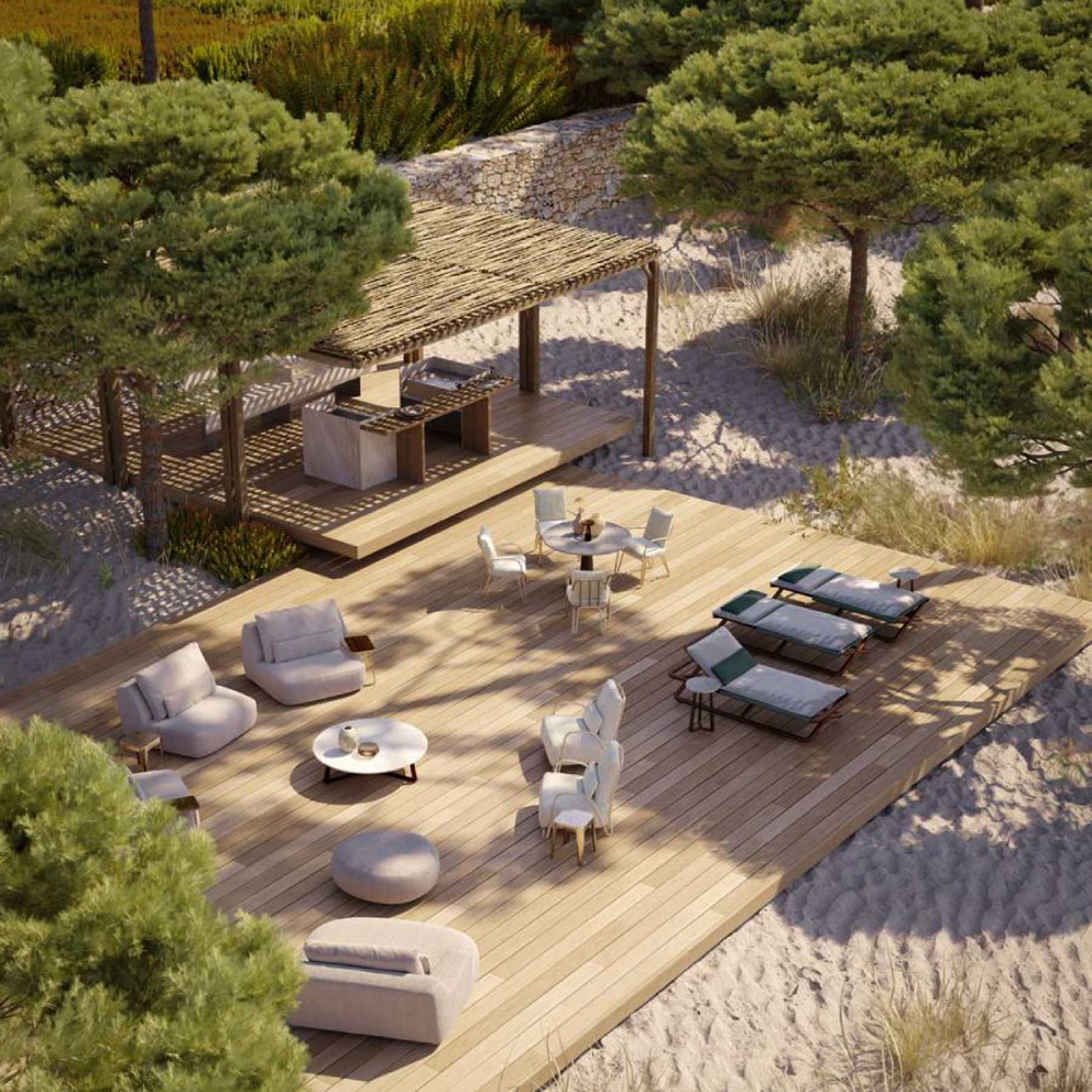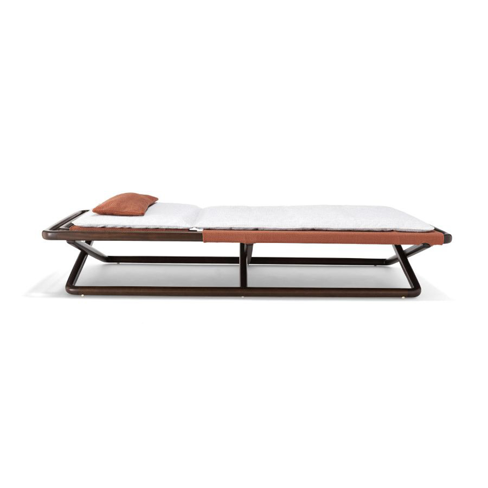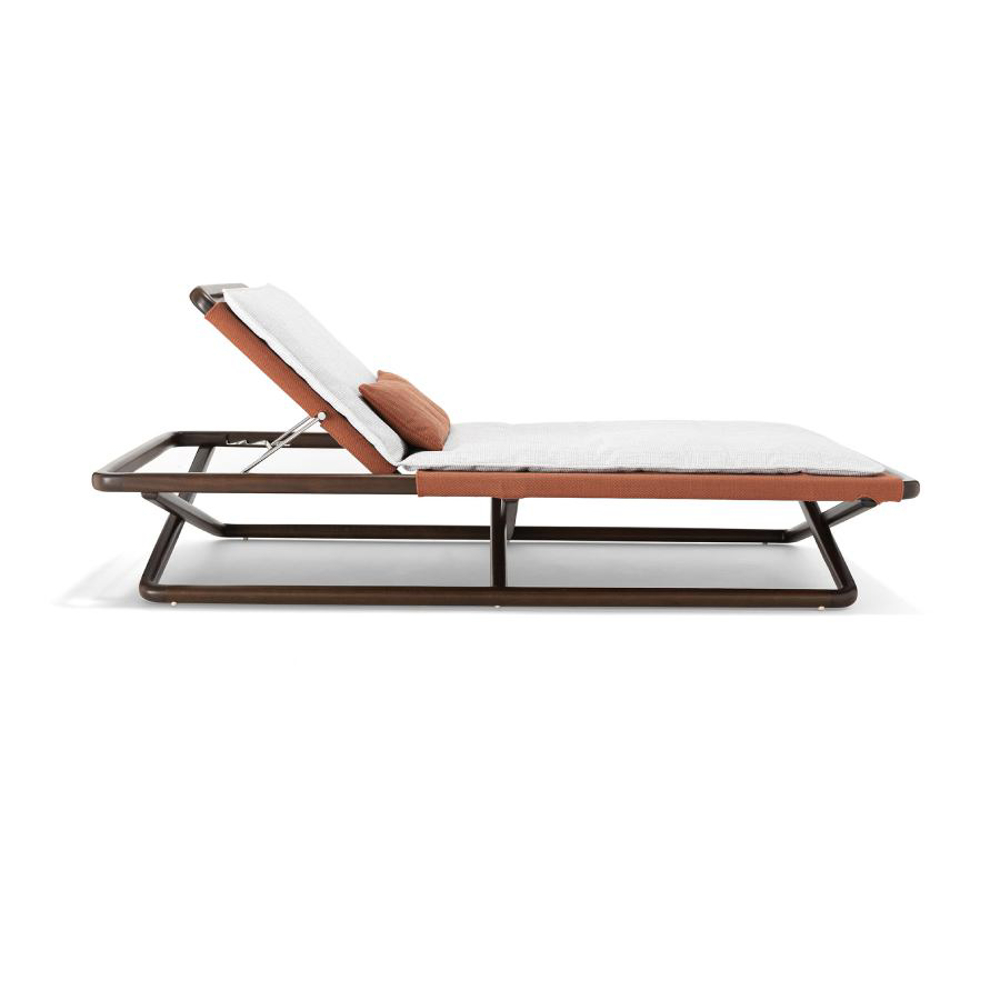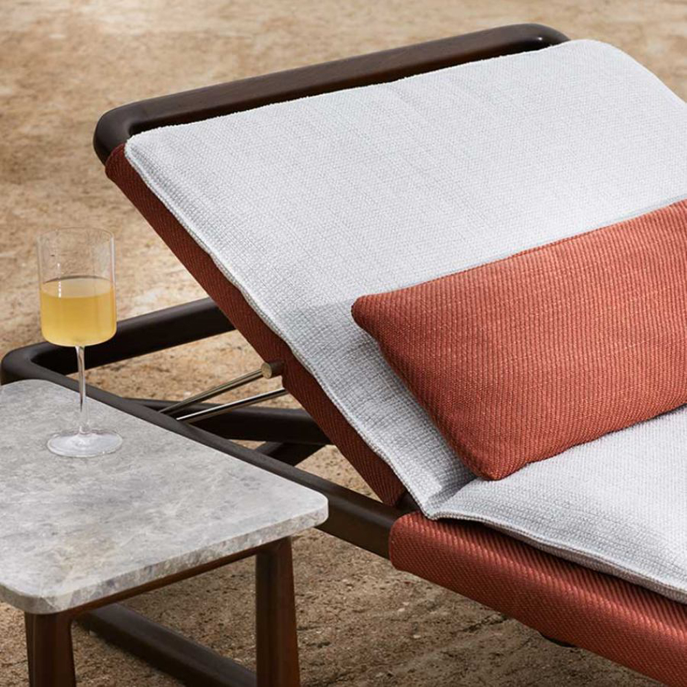 Its generous size makes it welcoming. Made entirely by hand, the precious fastening and weaving system of ropes accentuates the Loro Piana Interiors fabrics. The backrest is adjustable, and the seat features a lightly padded cushion that ensures comfort, along with a headrest.