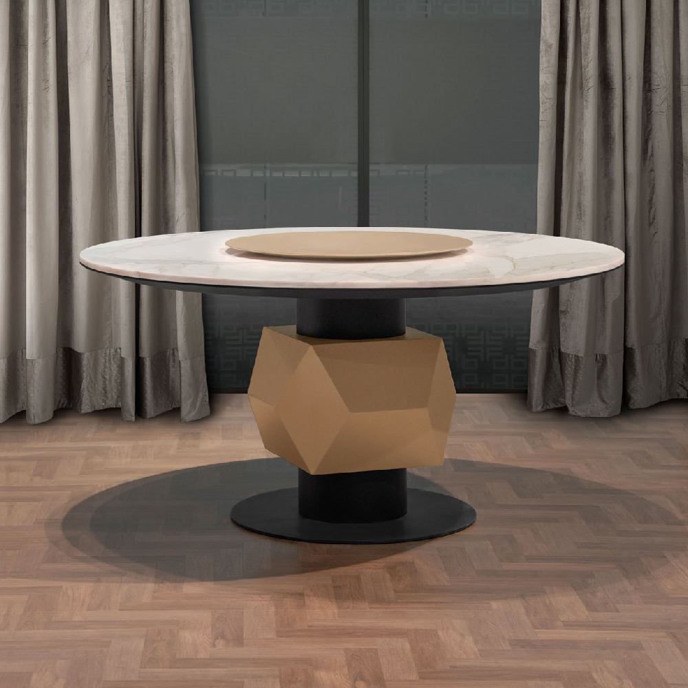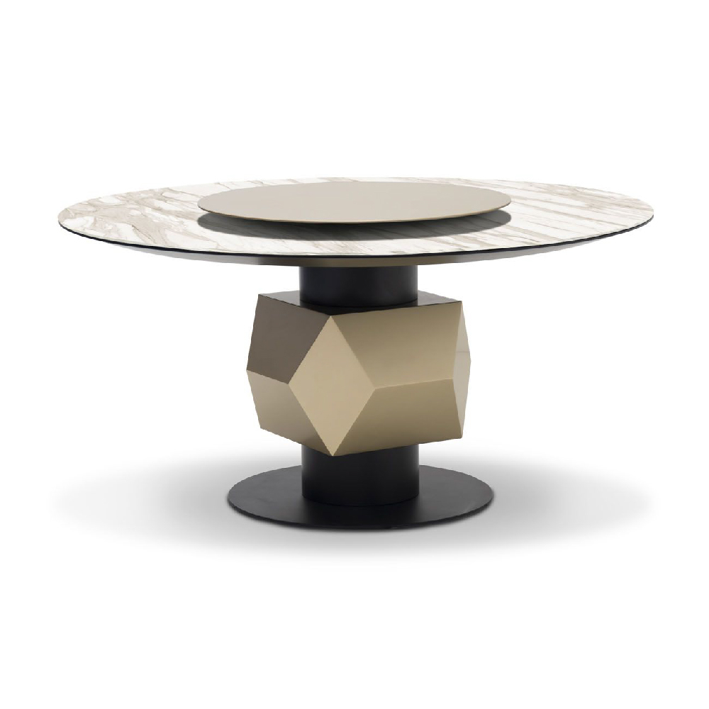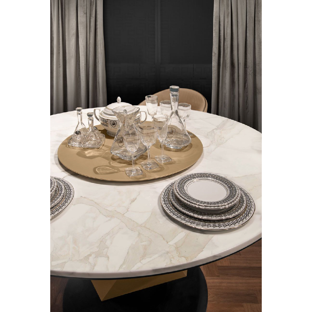 Top in marble Calacatta Cream, structure lacquered col. Black, Lazy Susan & diamond lacquered col. Pale Gold.