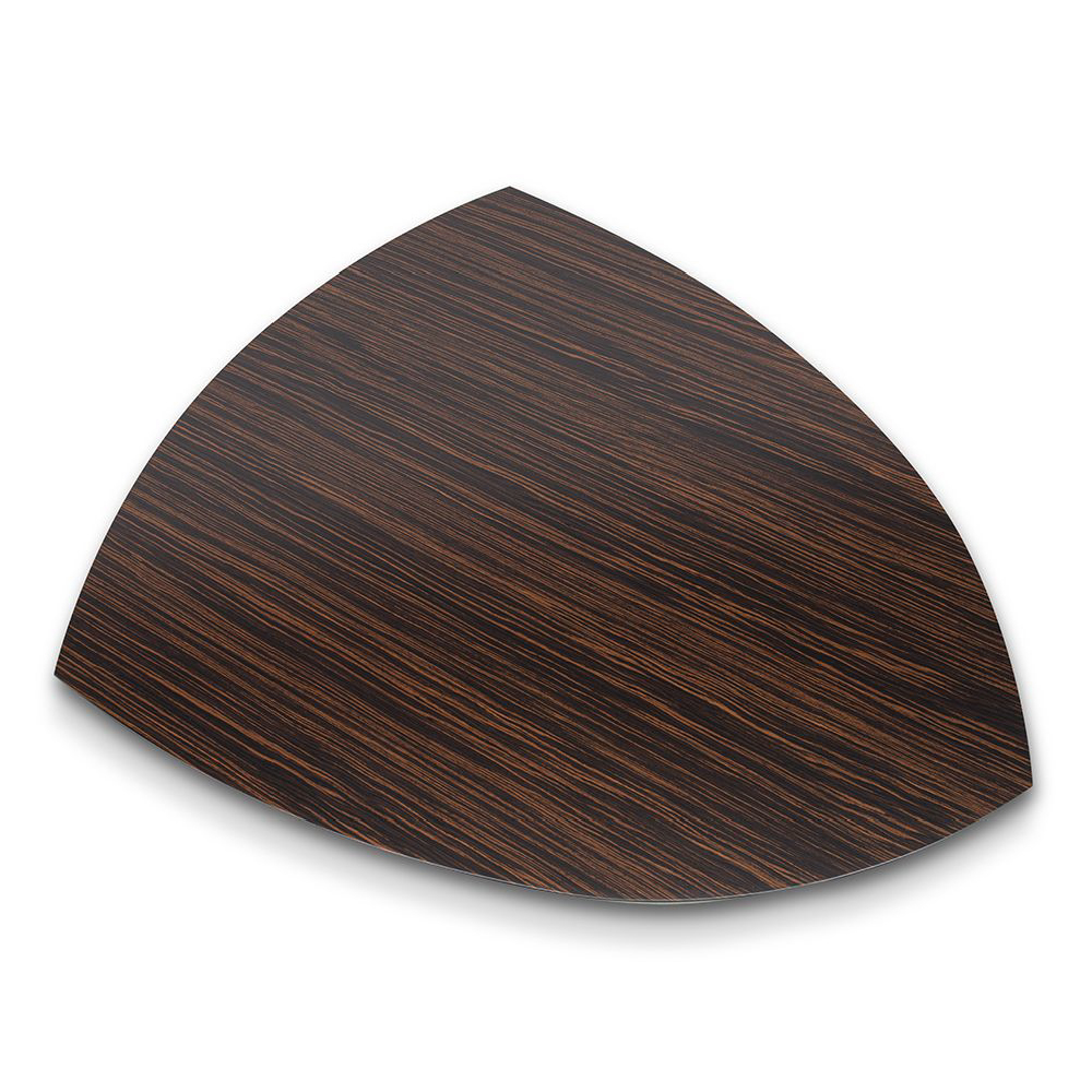 Top in veneer Wengé, metal legs Nickel Bronze finish, shield shape.