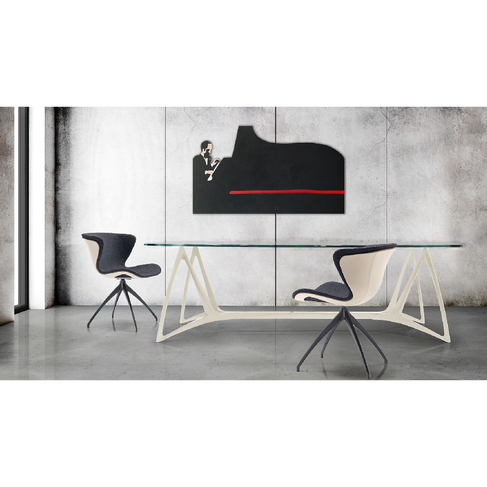 Glass top & structure in aluminum alloy, metal TL logo on base, available also with aluminum bas.