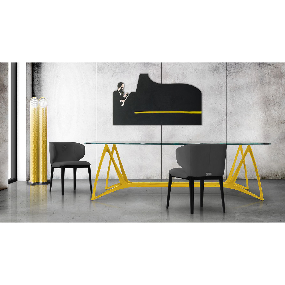Glass top & structure in aluminum alloy, metal TL logo on base, available also with aluminum bas.