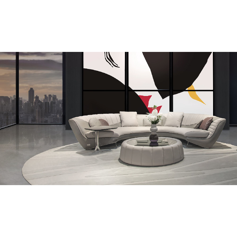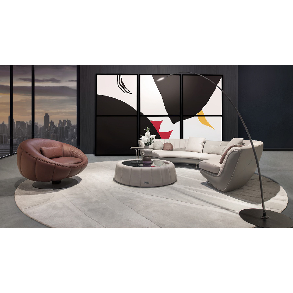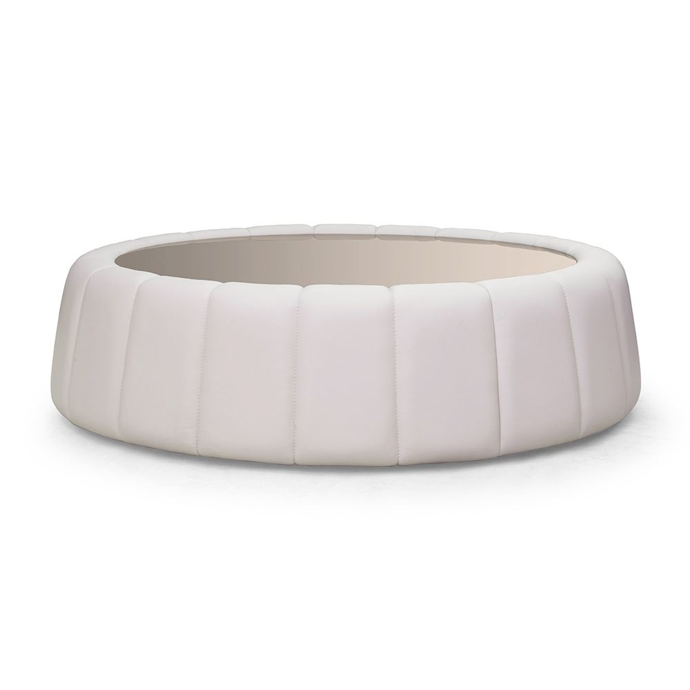 In leather Stoccarda col. 648 Cinder, top with fumé mirror encased.