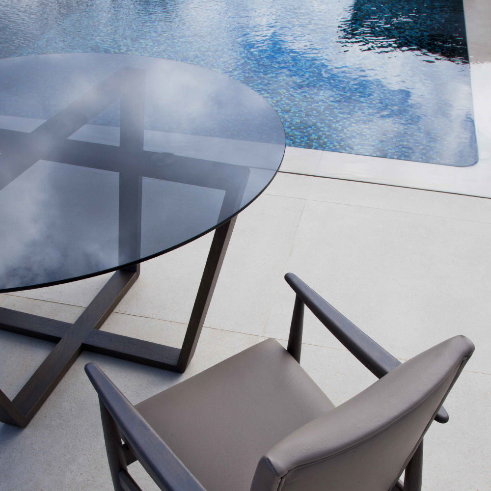 Trastevere table outdoor is eclectic, fascinating and of great personality. An accessory ready to become the protagonist of your Outdoor with an essential and elegant trait. Trastevere is a table with solid wood base in iroko, whose elegance leaves room for different glass colors for the top.