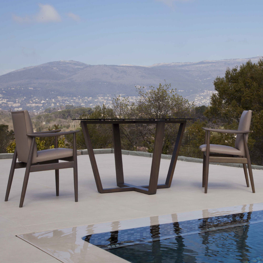 Trastevere table outdoor is eclectic, fascinating and of great personality. An accessory ready to become the protagonist of your Outdoor with an essential and elegant trait. Trastevere is a table with solid wood base in iroko, whose elegance leaves room for different glass colors for the top.